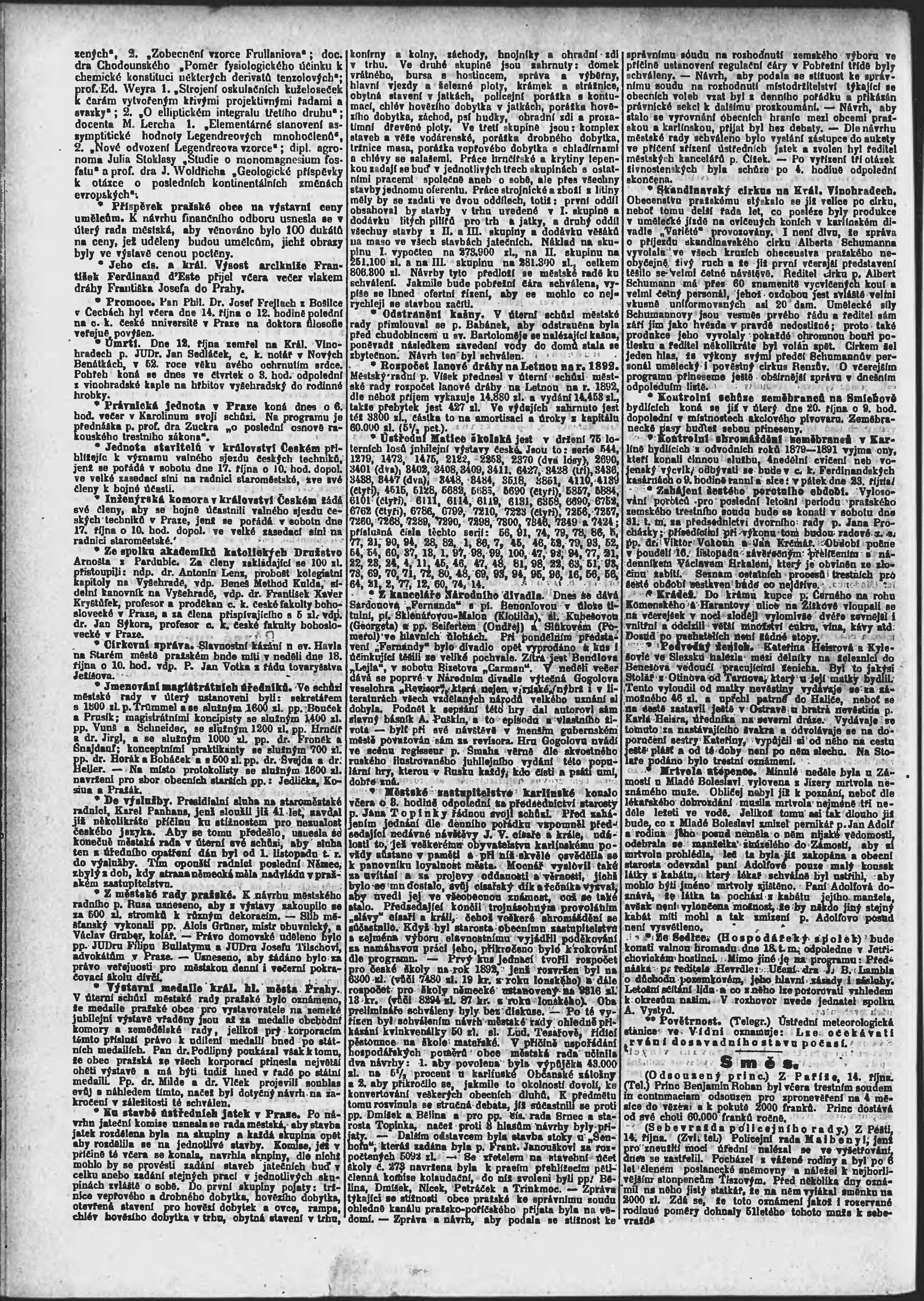 * Datum vydání výtisku: 15.10.1891 Číslo výtisku: 283 Poznámky k výtisku: ranní vydání;
