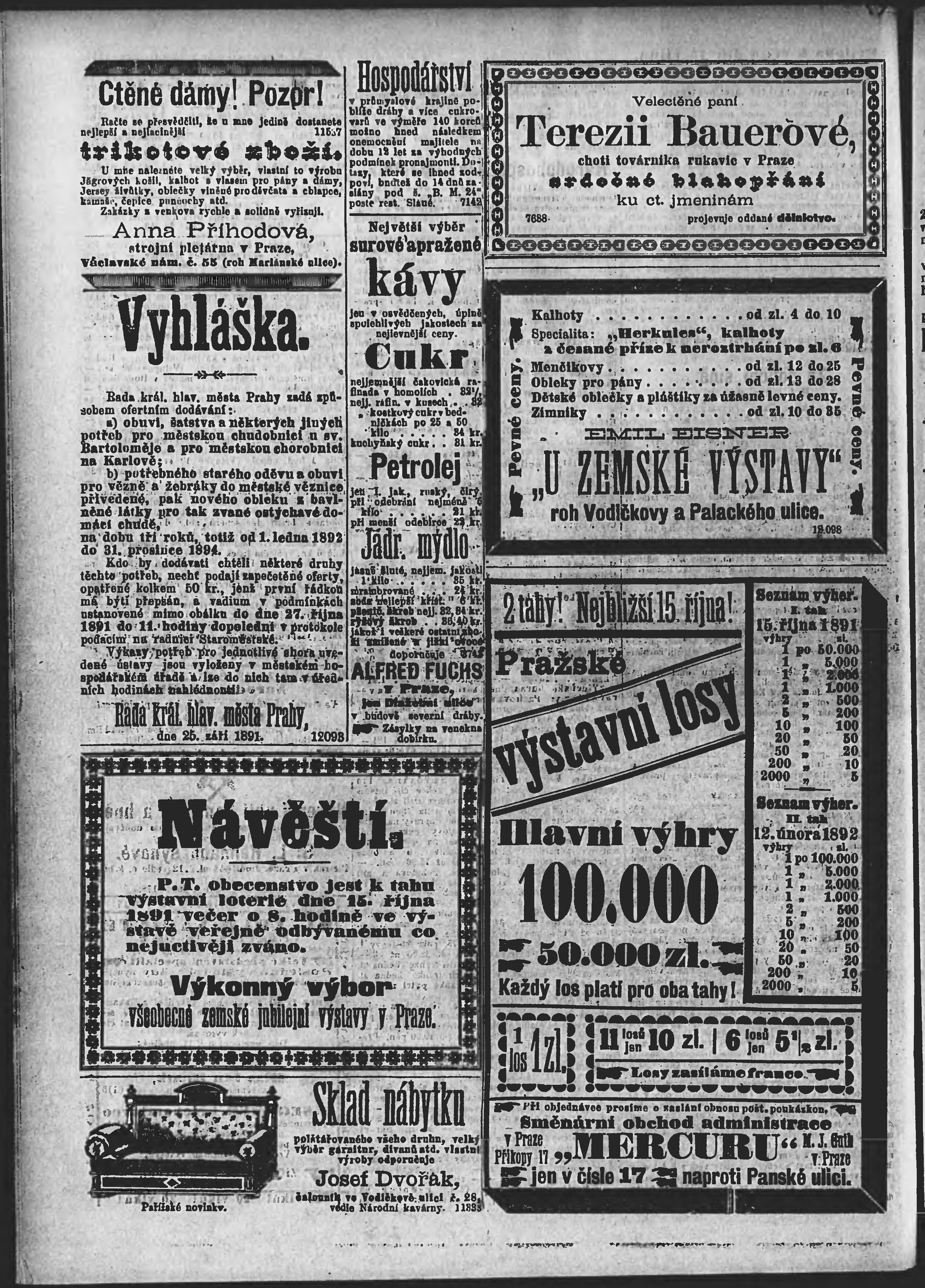* Datum vydání výtisku: 15.10.1891 Číslo výtisku: 283 Poznámky k výtisku: ranní vydání;