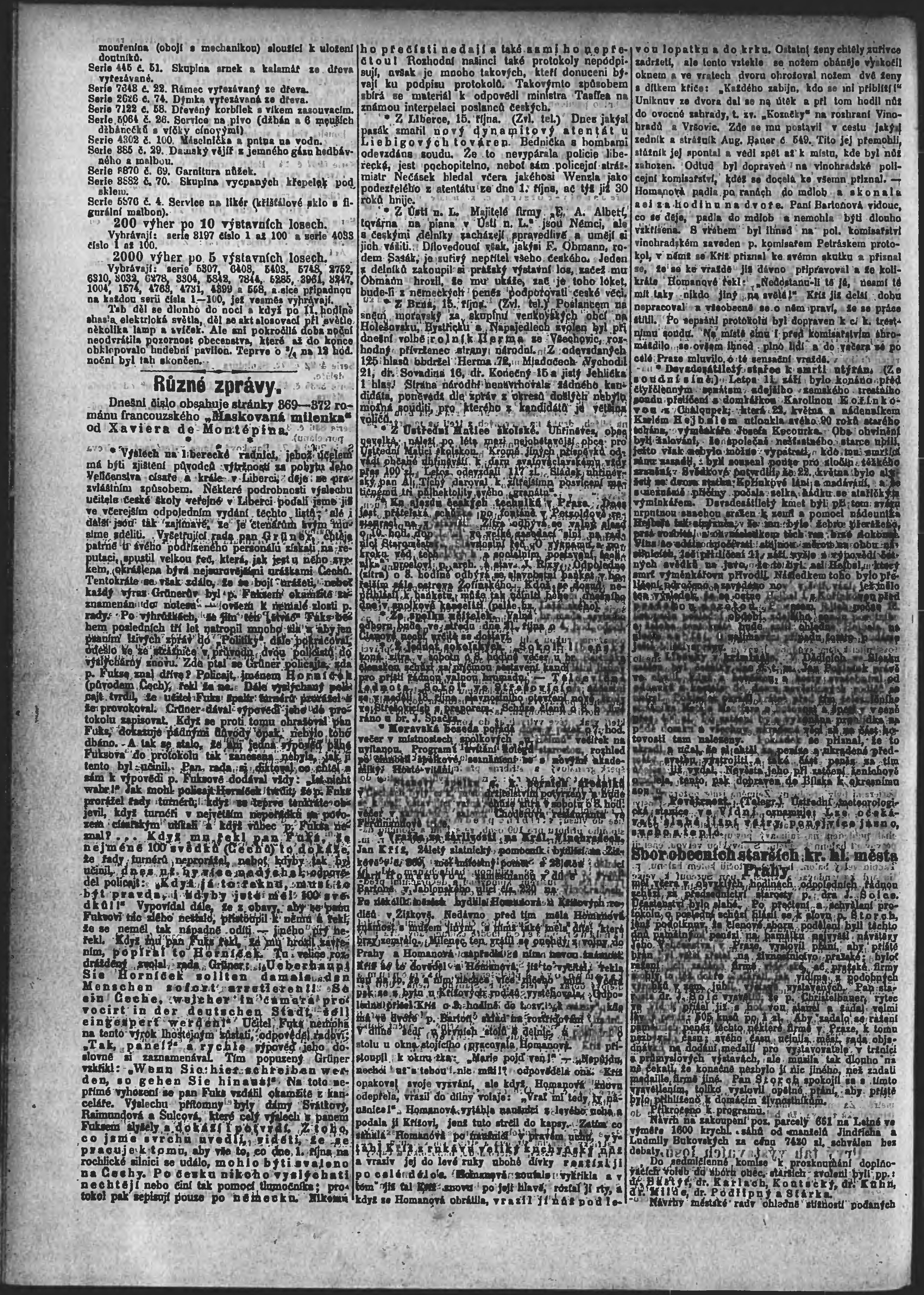 * Datum vydání výtisku: 16.10.1891 Číslo výtisku: 284 Poznámky k výtisku: ranní vydání;