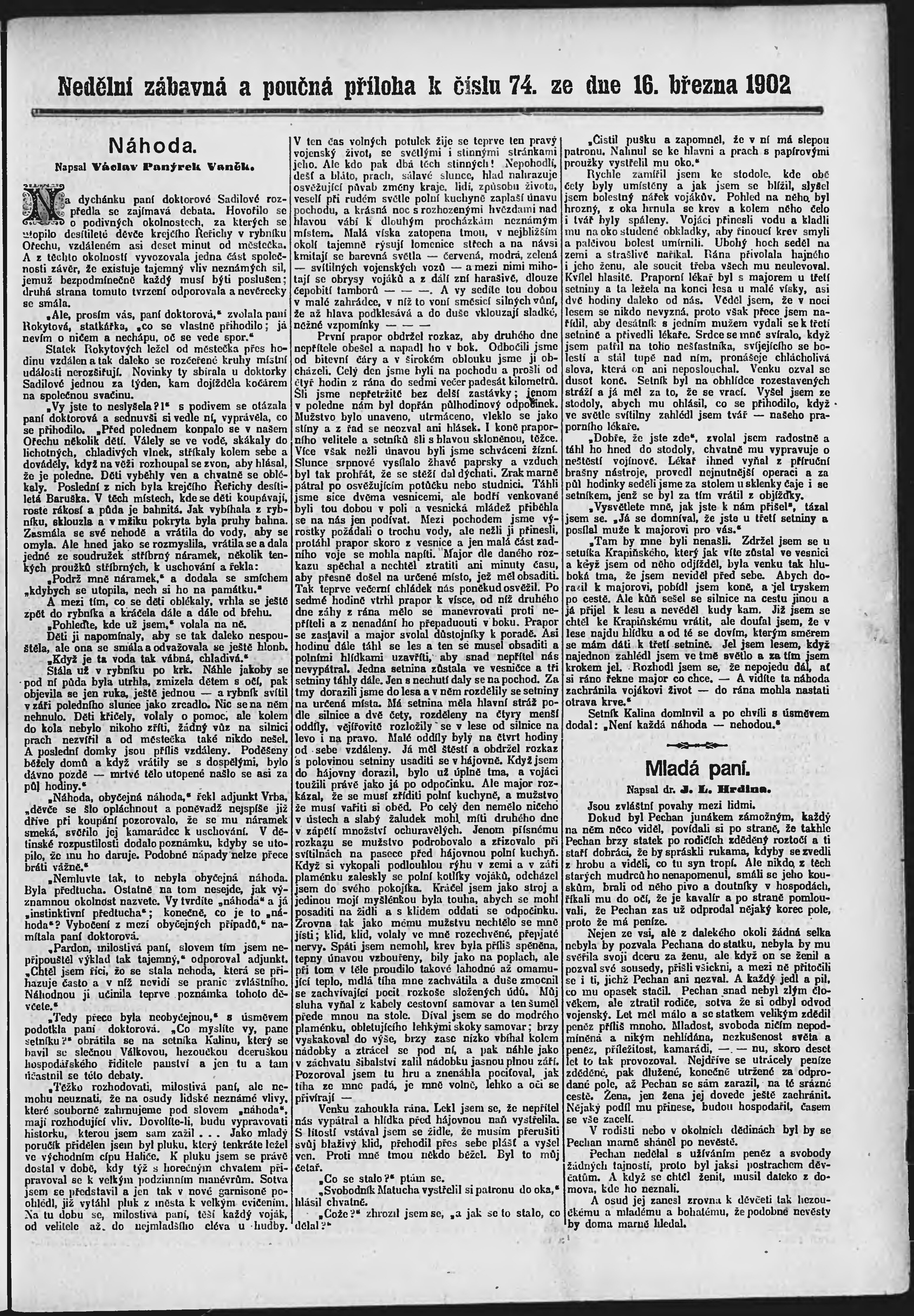 * Datum vydání výtisku: 16.3.1902 Číslo výtisku: 74 Poznámky k výtisku: ranní vydání;