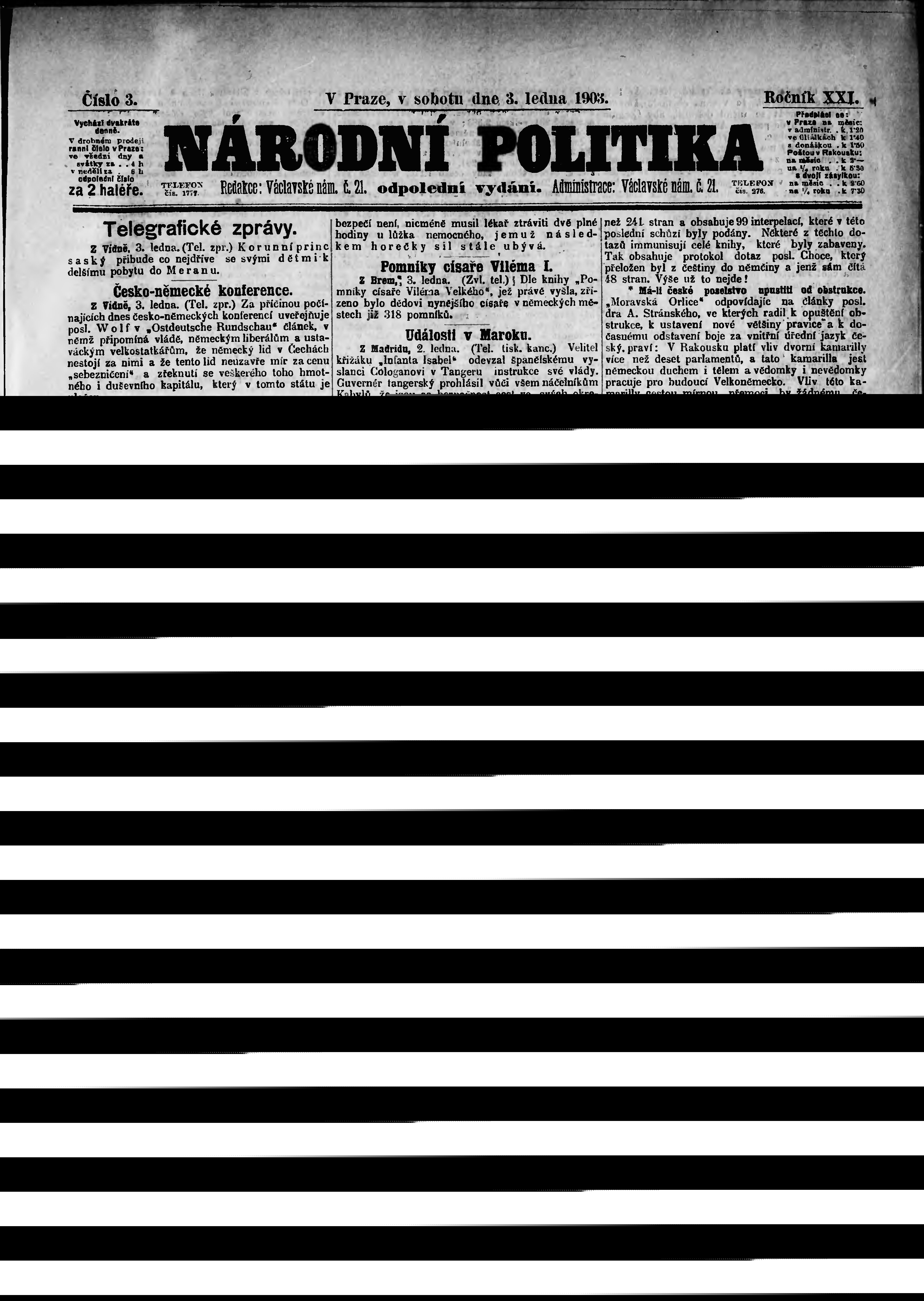 * Datum vydání výtisku: 3.1.1903 Číslo výtisku: 3 Poznámky k výtisku: odpolední vydání;