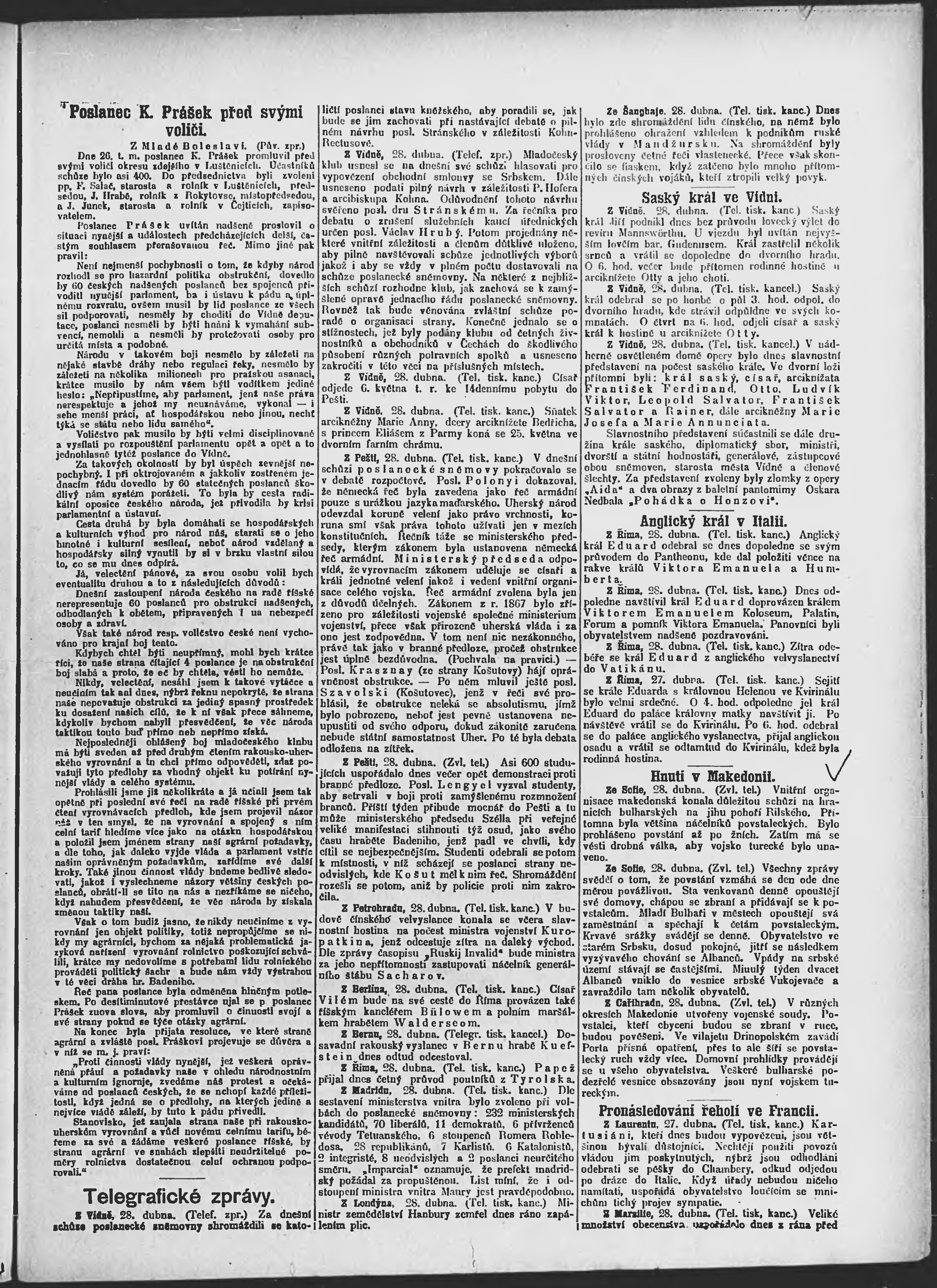 * Datum vydání výtisku: 29.4.1903 Číslo výtisku: 117 Poznámky k výtisku: ranní vydání;