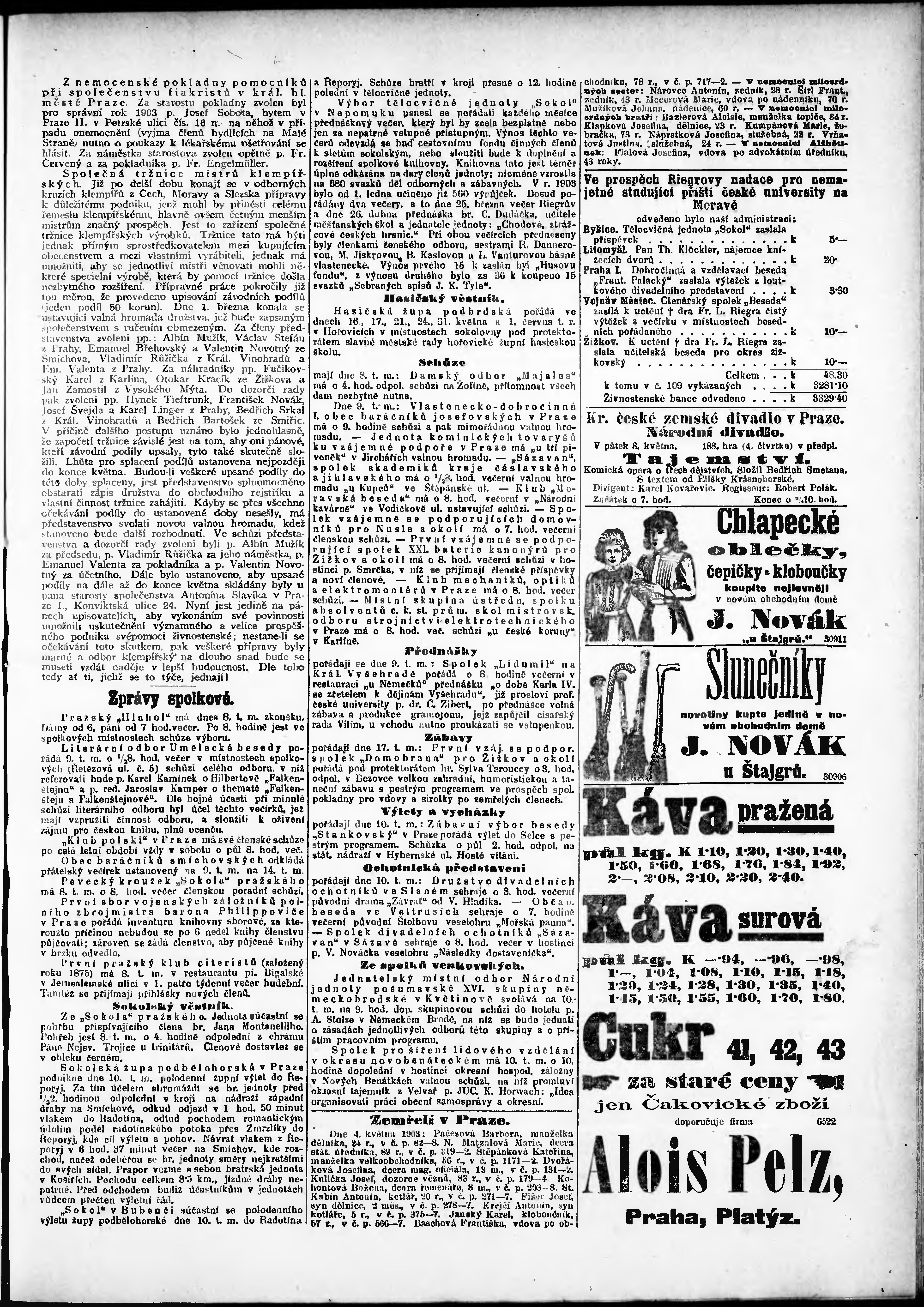 * Datum vydání výtisku: 8.5.1903 Číslo výtisku: 126 Poznámky k výtisku: odpolední vydání;