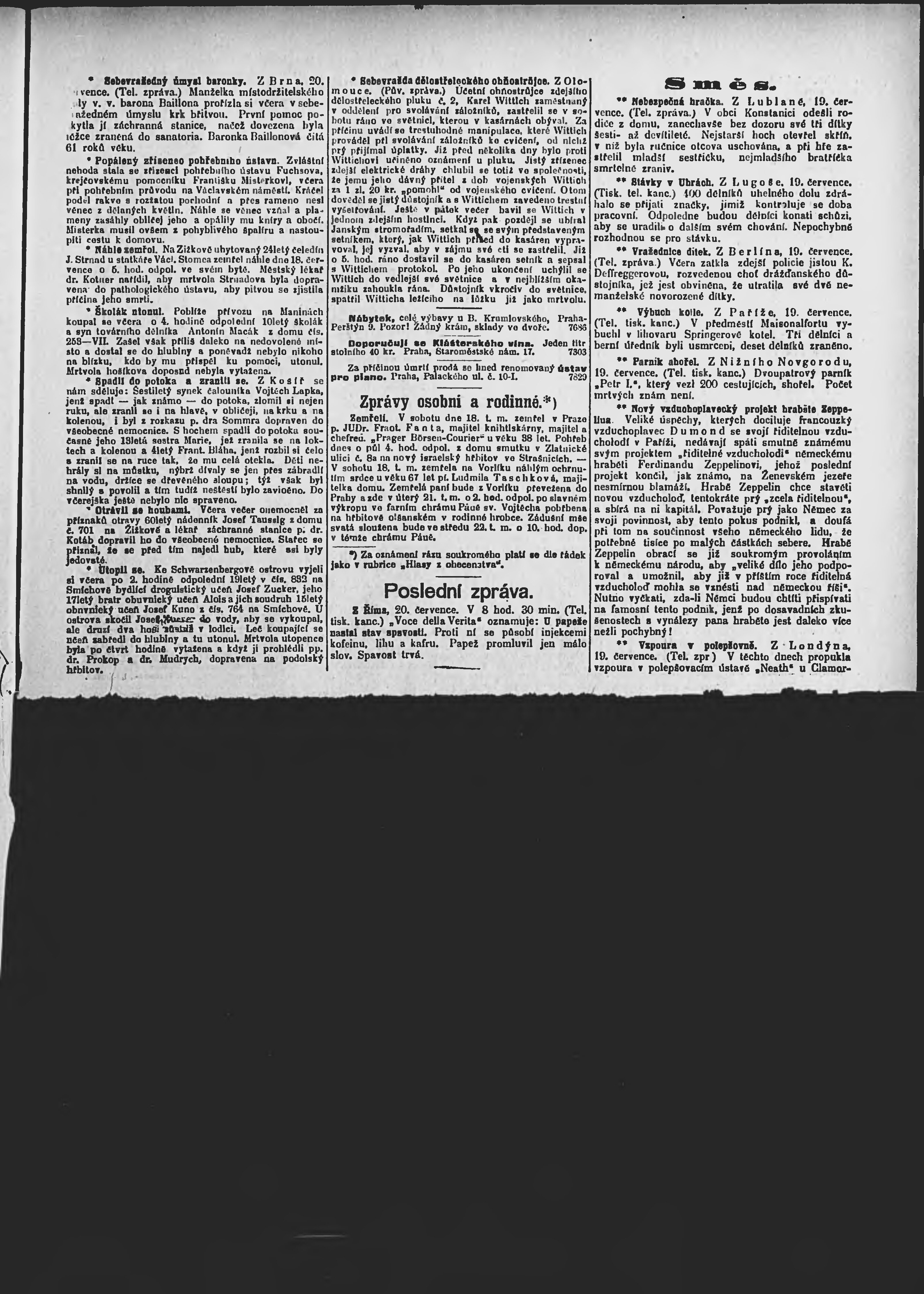 * Datum vydání výtisku: 20.7.1903 Číslo výtisku: 196 Poznámky k výtisku: ranní vydání;