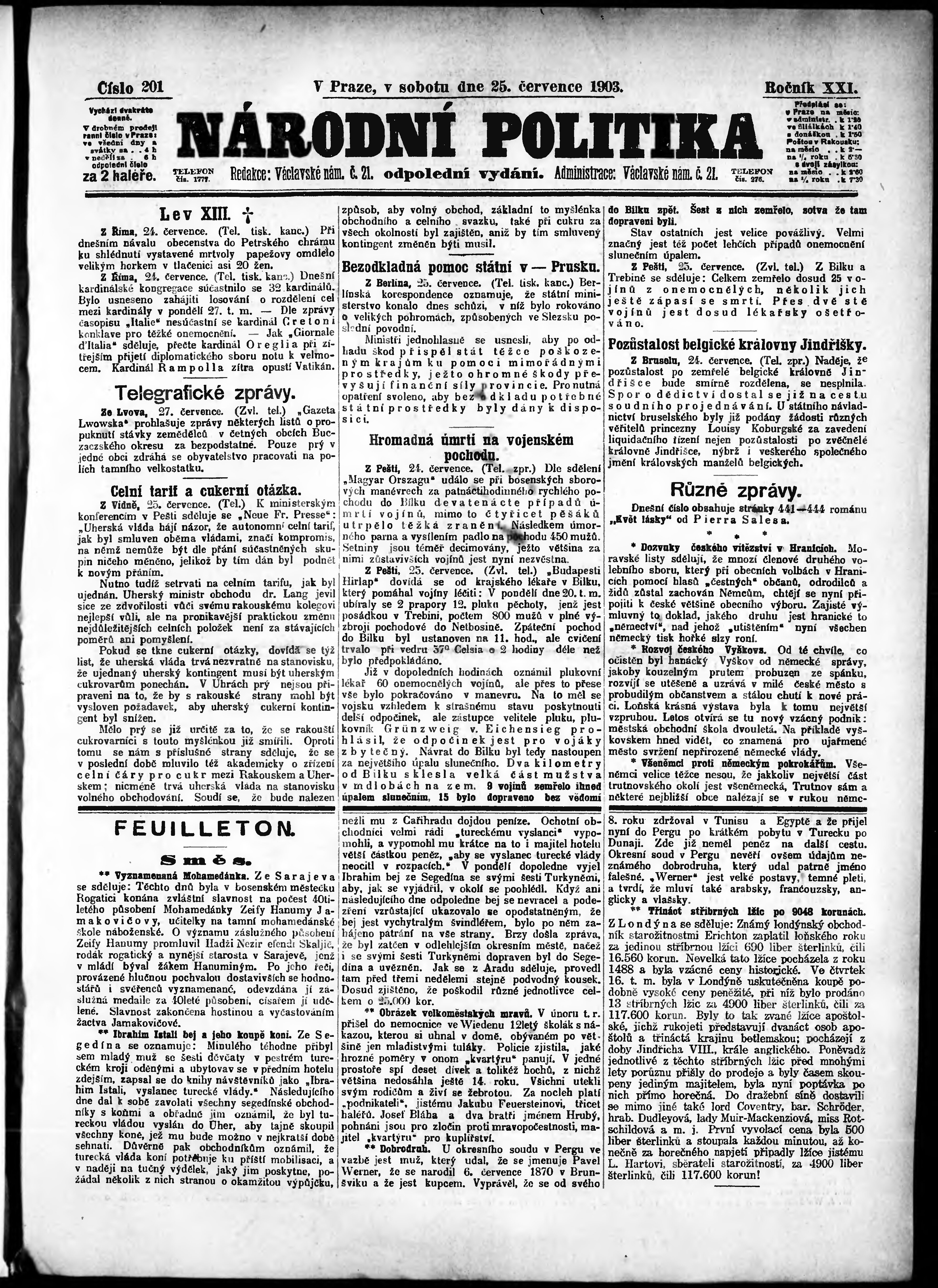 * Datum vydání výtisku: 25.7.1903 Číslo výtisku: 201 Poznámky k výtisku: odpolední vydání;