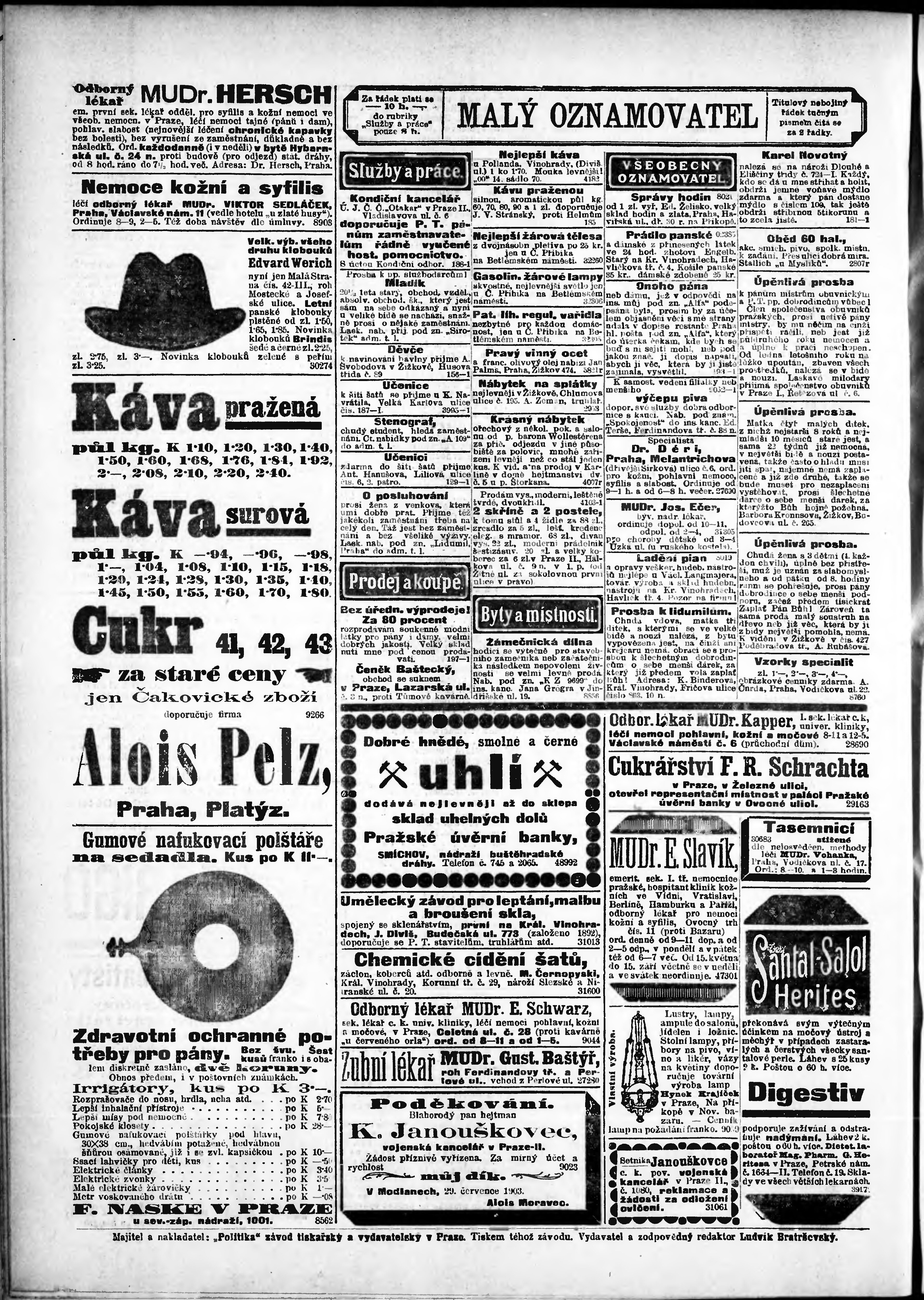 * Datum vydání výtisku: 1.8.1903 Číslo výtisku: 208 Poznámky k výtisku: odpolední vydání;