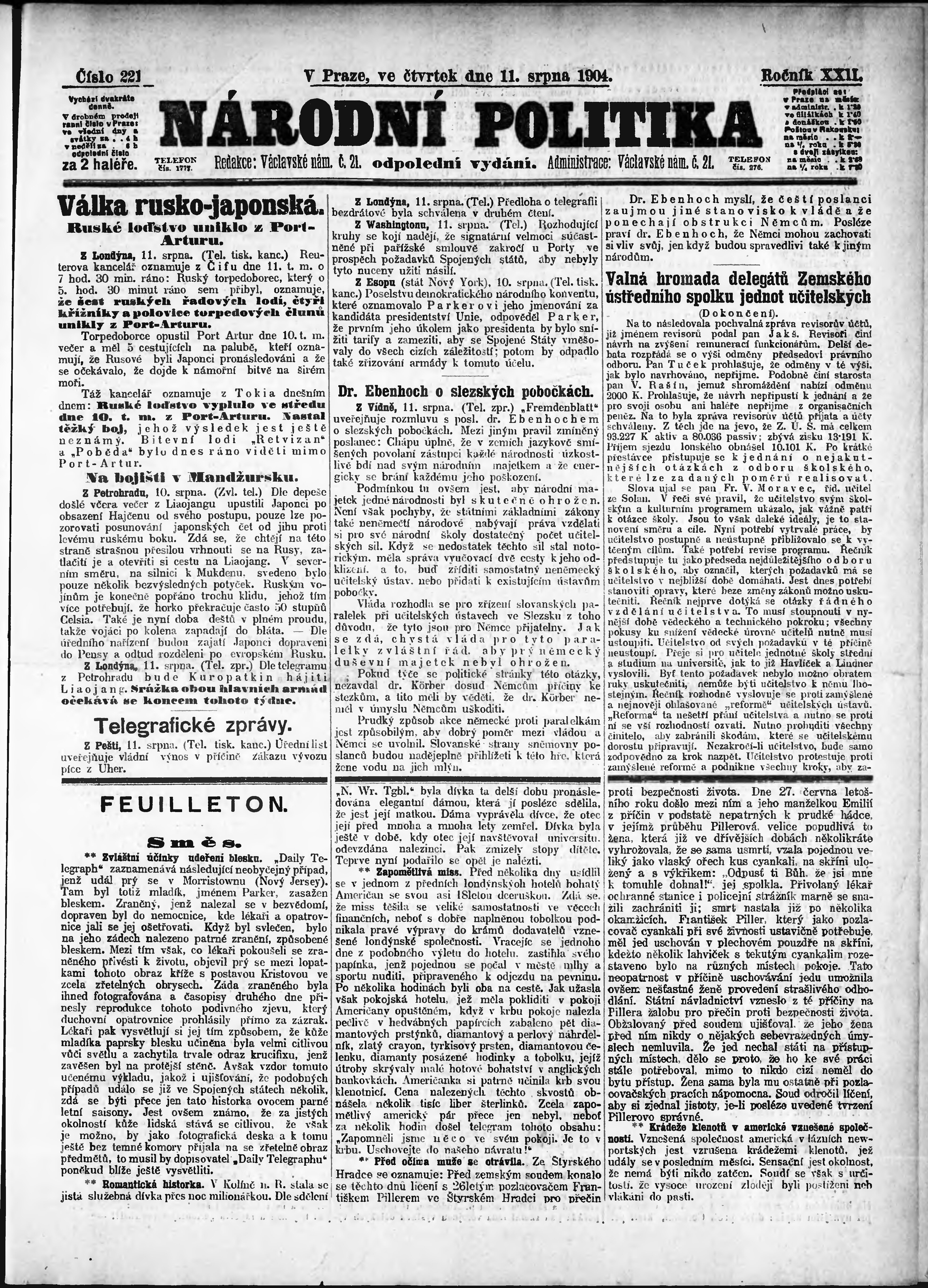 * Datum vydání výtisku: 11.8.1904 Číslo výtisku: 221 Poznámky k výtisku: odpolední vydání;