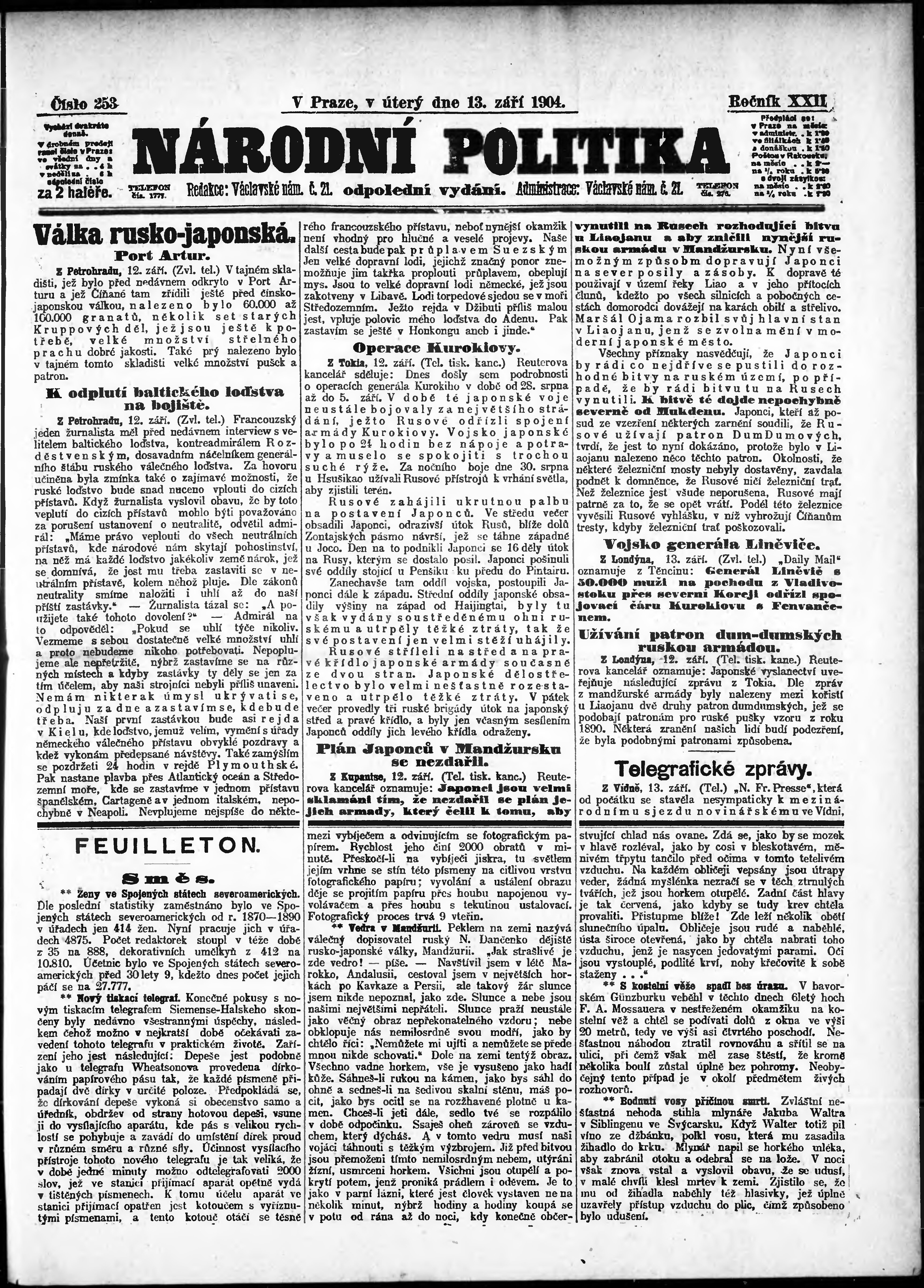 * Datum vydání výtisku: 13.9.1904 Číslo výtisku: 253 Poznámky k výtisku: odpolední vydání;