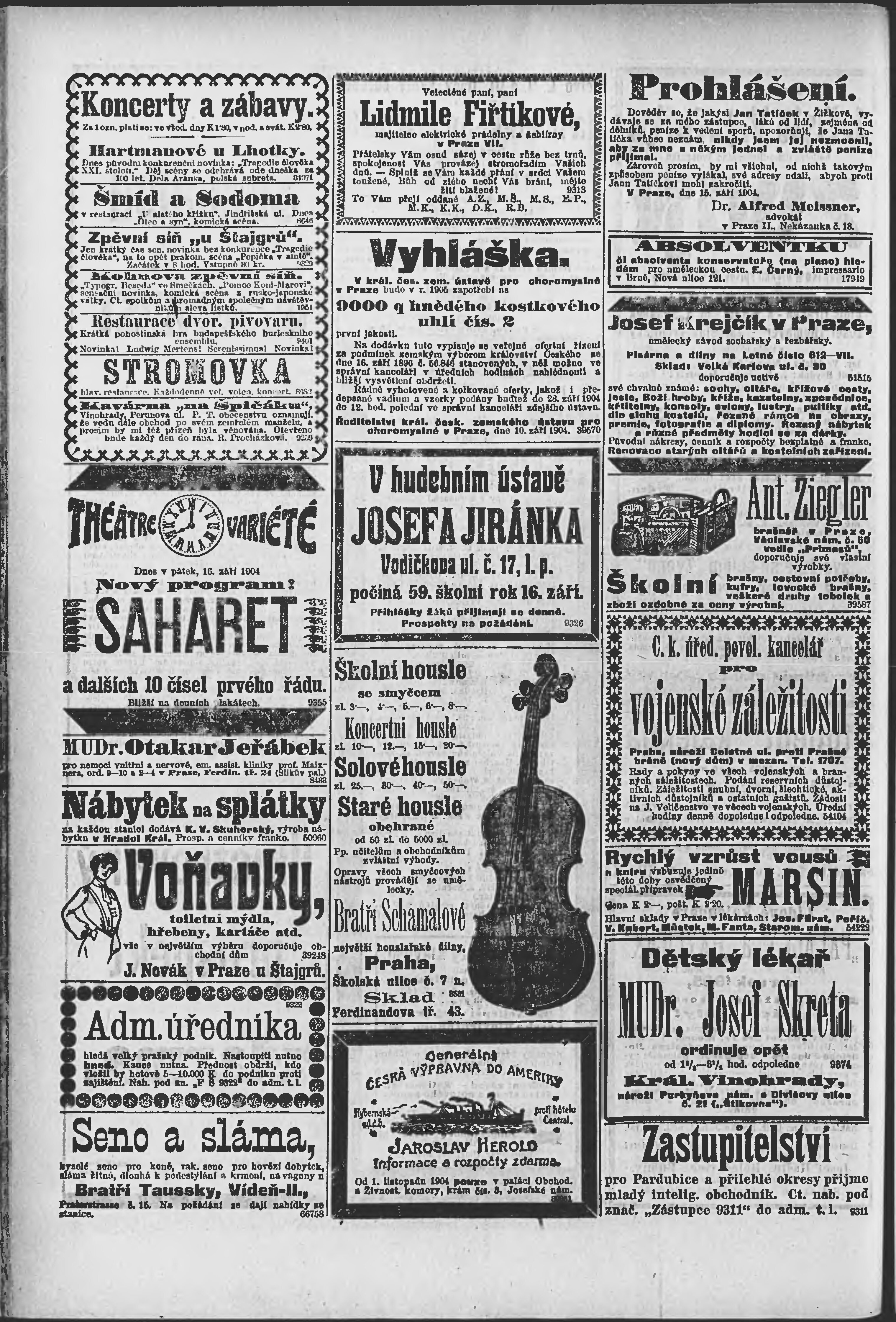 * Datum vydání výtisku: 16.9.1904 Číslo výtisku: 256 Poznámky k výtisku: ranní vydání;