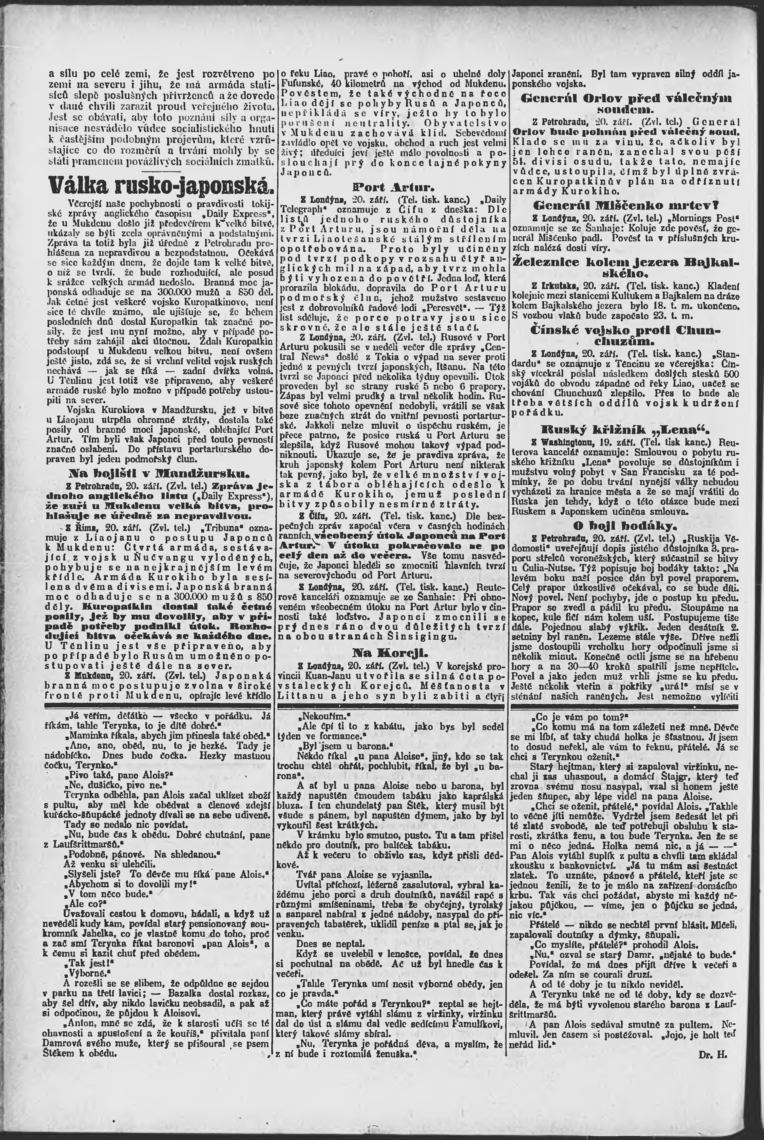 * Datum vydání výtisku: 21.9.1904 Číslo výtisku: 261 Poznámky k výtisku: ranní vydání;