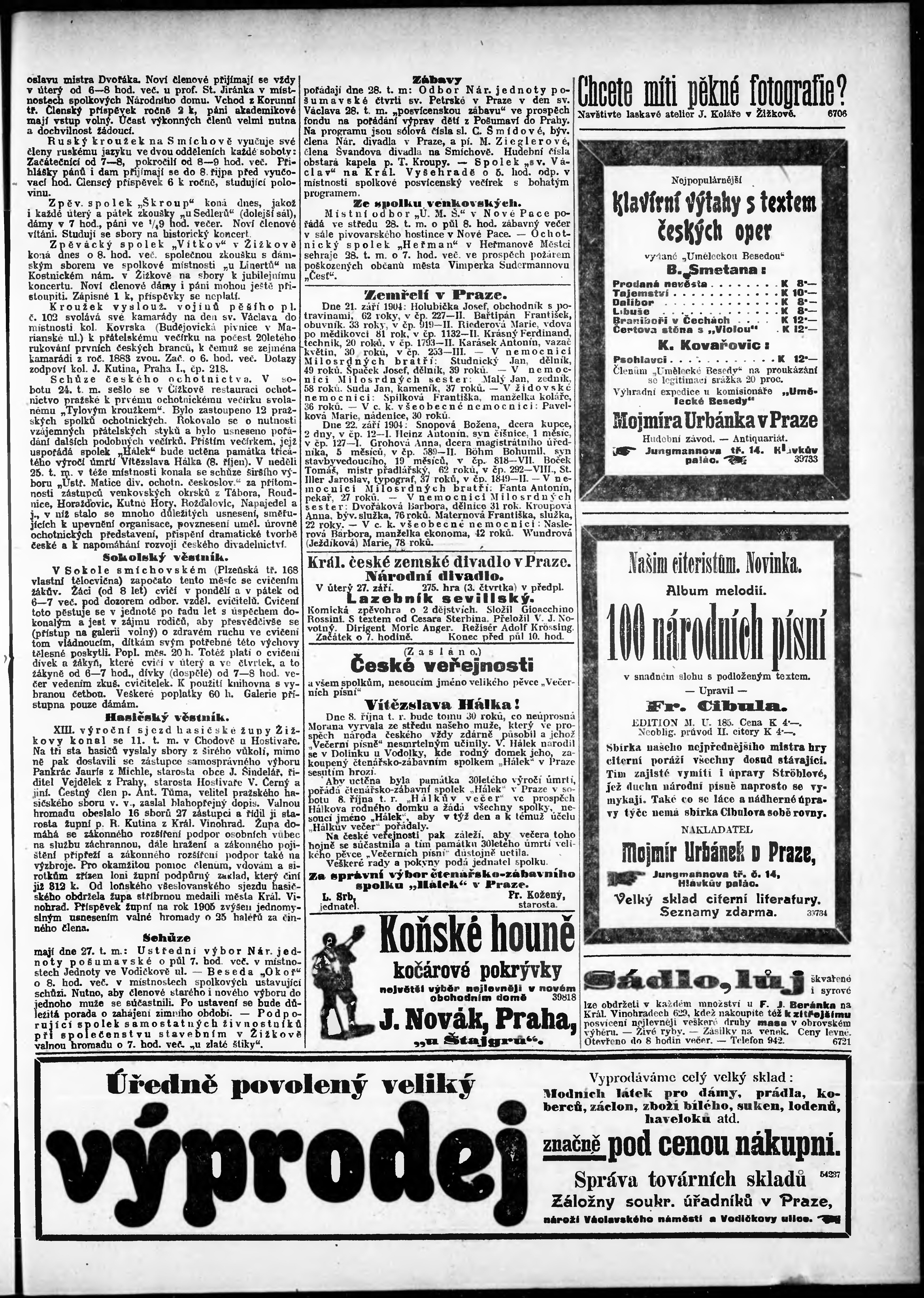 * Datum vydání výtisku: 27.9.1904 Číslo výtisku: 267 Poznámky k výtisku: odpolední vydání;