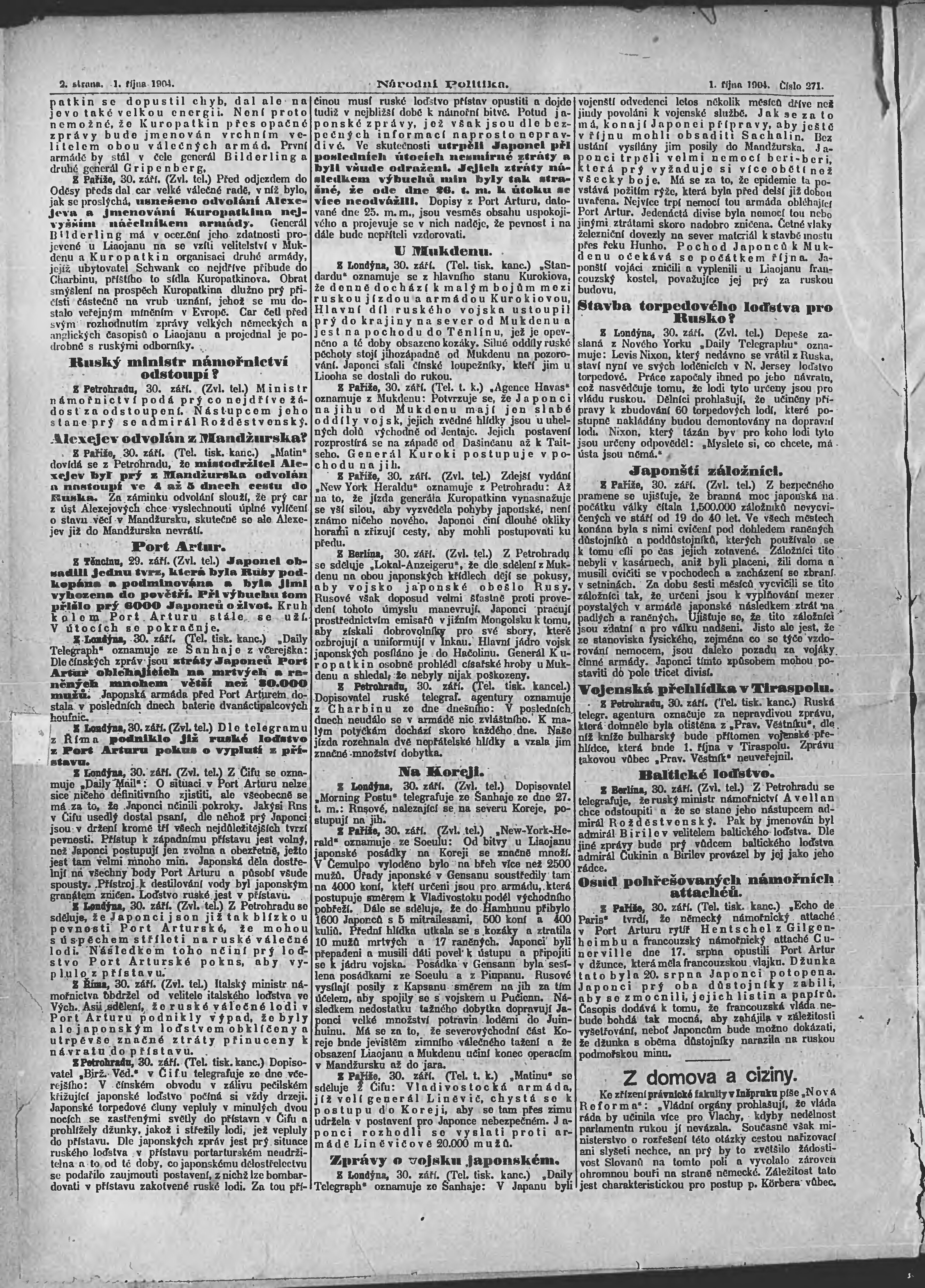 * Datum vydání výtisku: 1.10.1904 Číslo výtisku: 271 Poznámky k výtisku: ranní vydání;