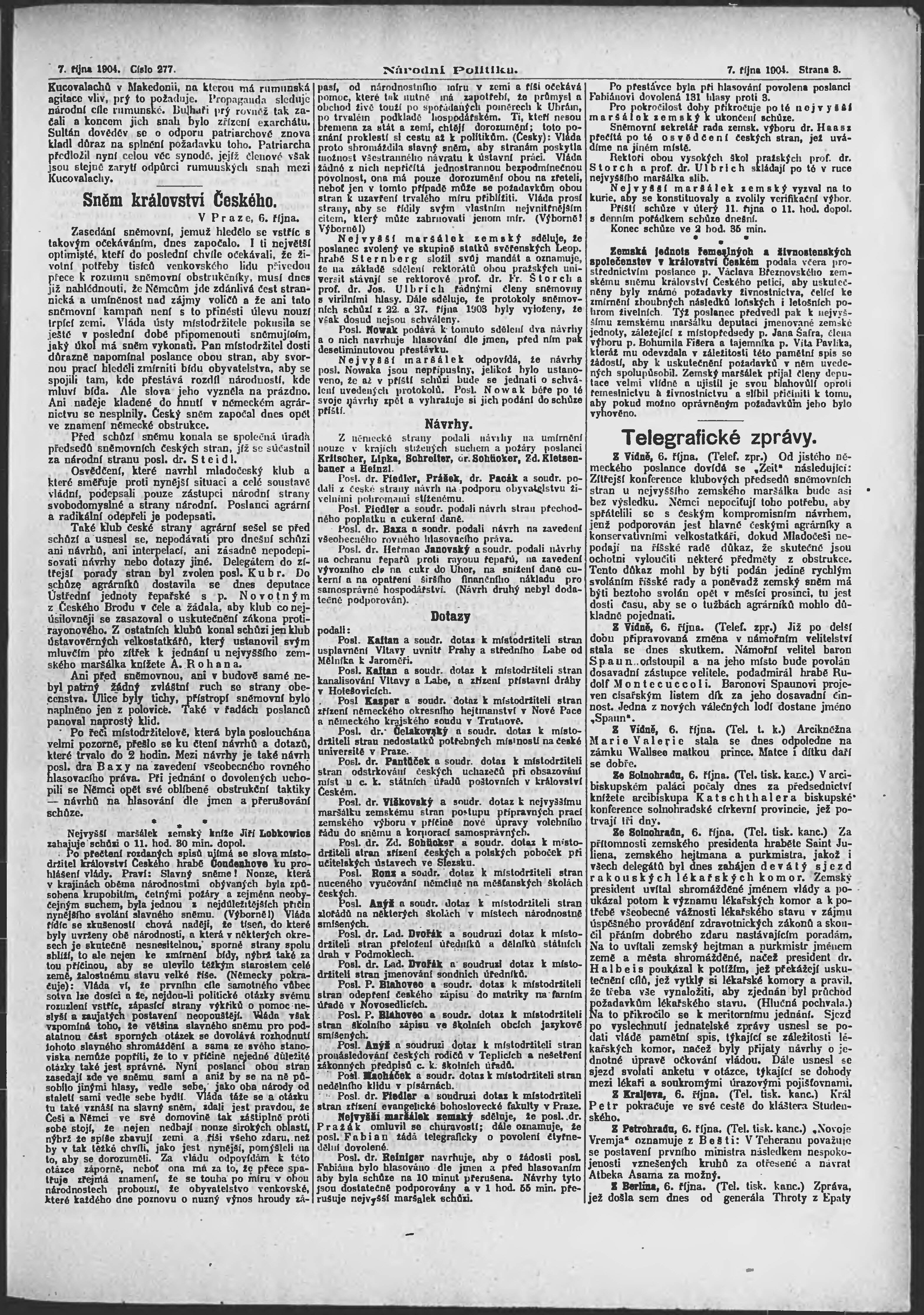 ranní vydání; nekonzistence číslování stran;