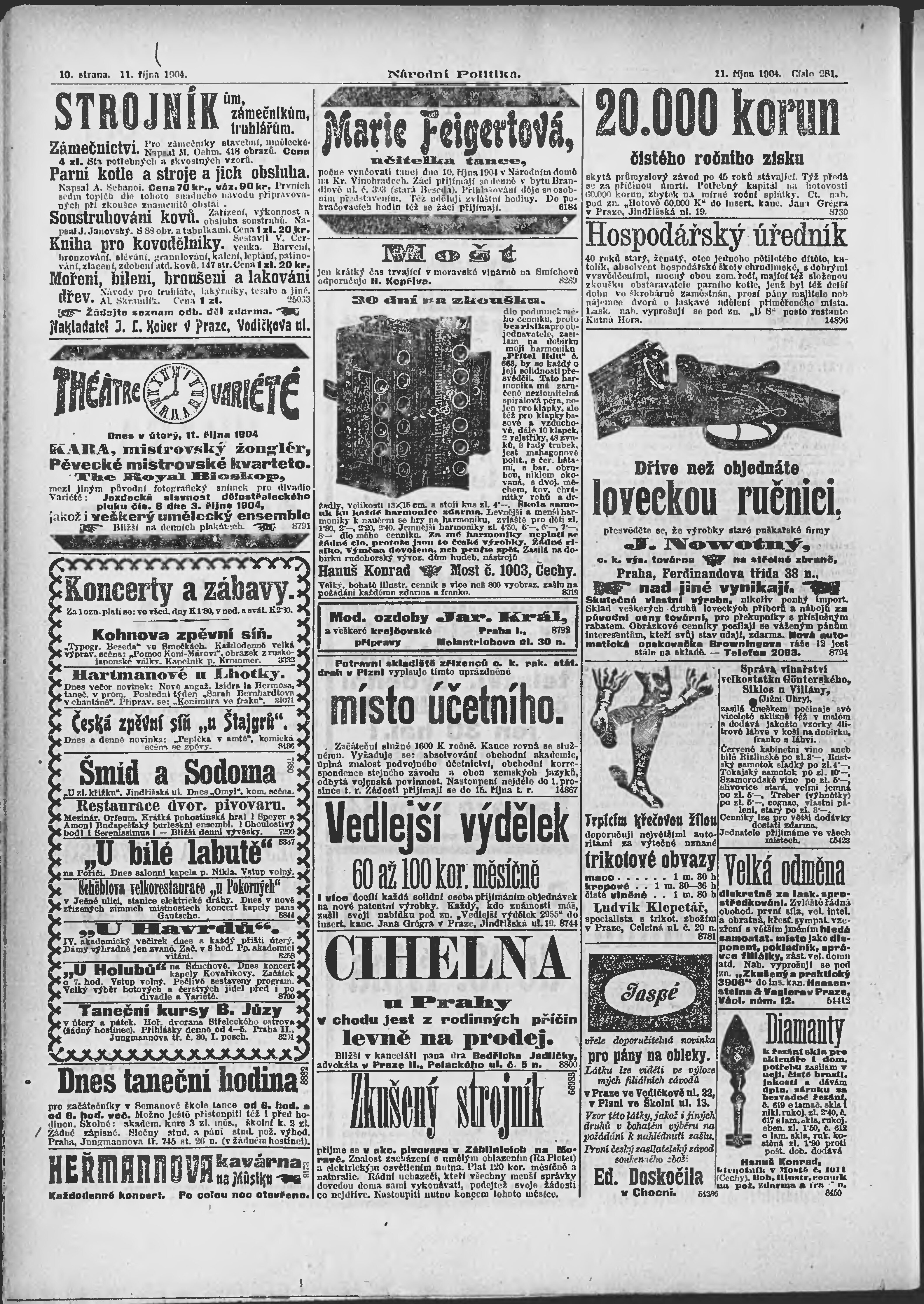 * Datum vydání výtisku: 11.10.1904 Číslo výtisku: 281 Poznámky k výtisku: ranní vydání;