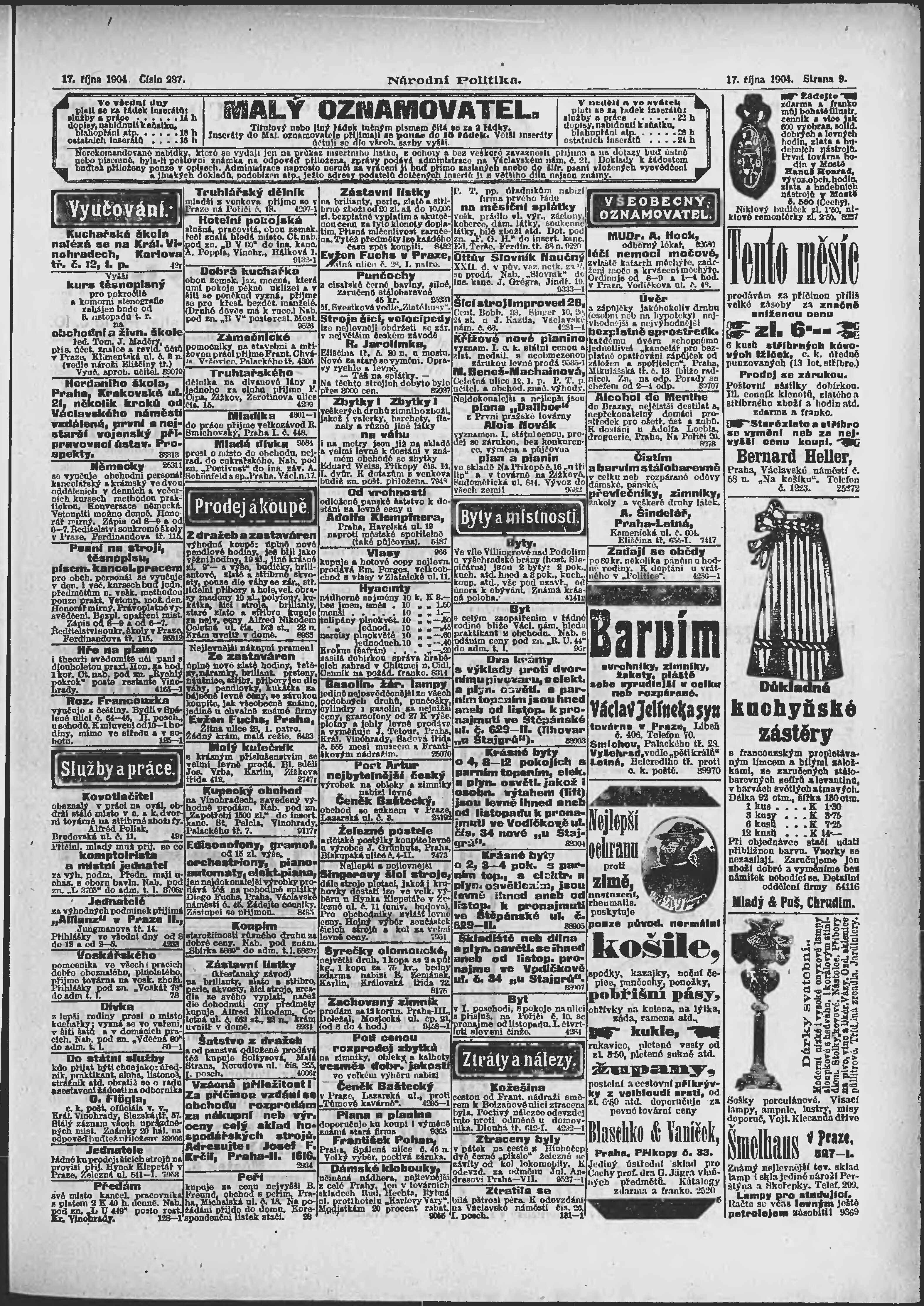 * Datum vydání výtisku: 17.10.1904 Číslo výtisku: 287 Poznámky k výtisku: ranní vydání;