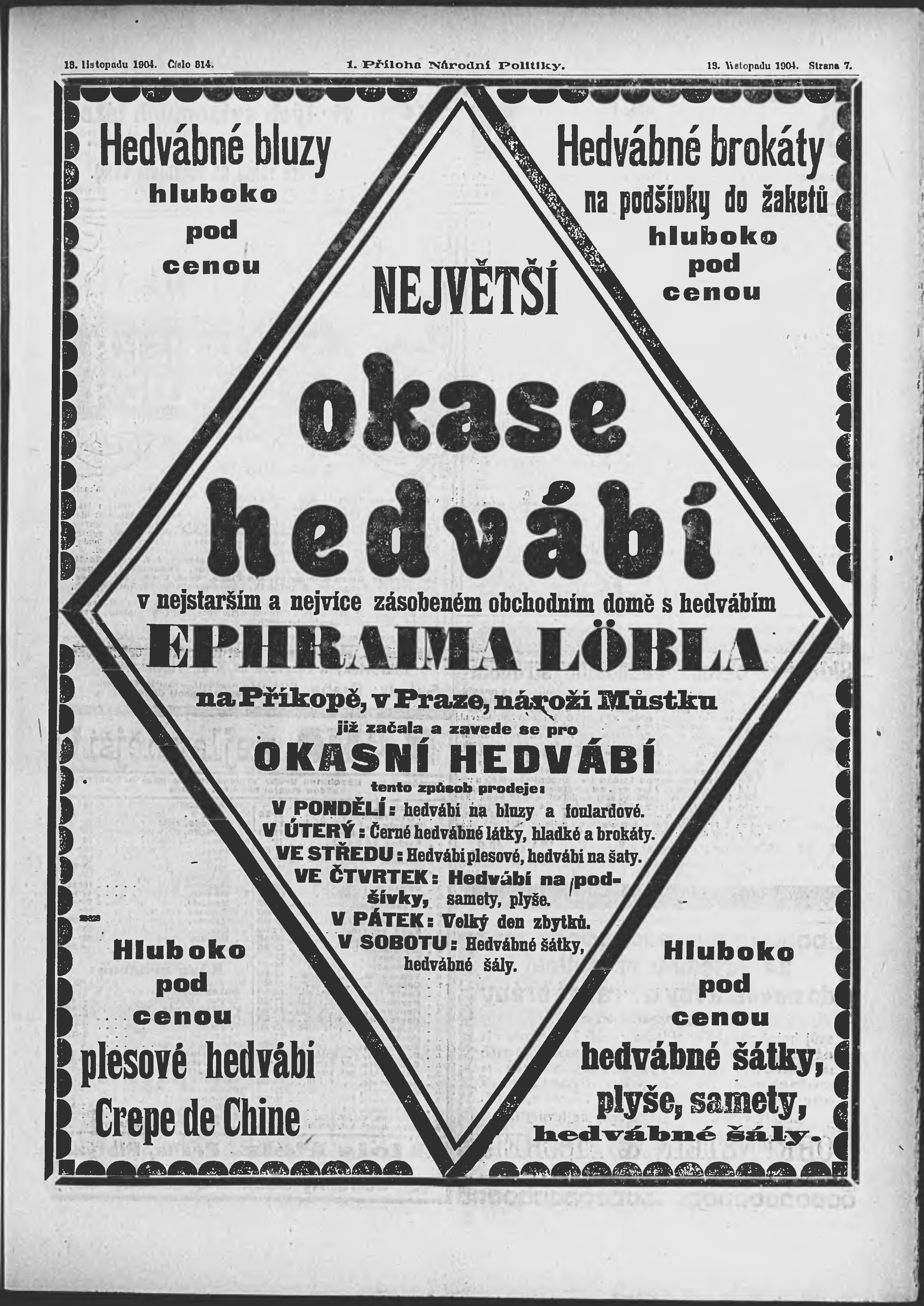 * Datum vydání výtisku: 13.11.1904 Číslo výtisku: 314 Typ výtisku: příloha Poznámky k výtisku: 1. příloha;