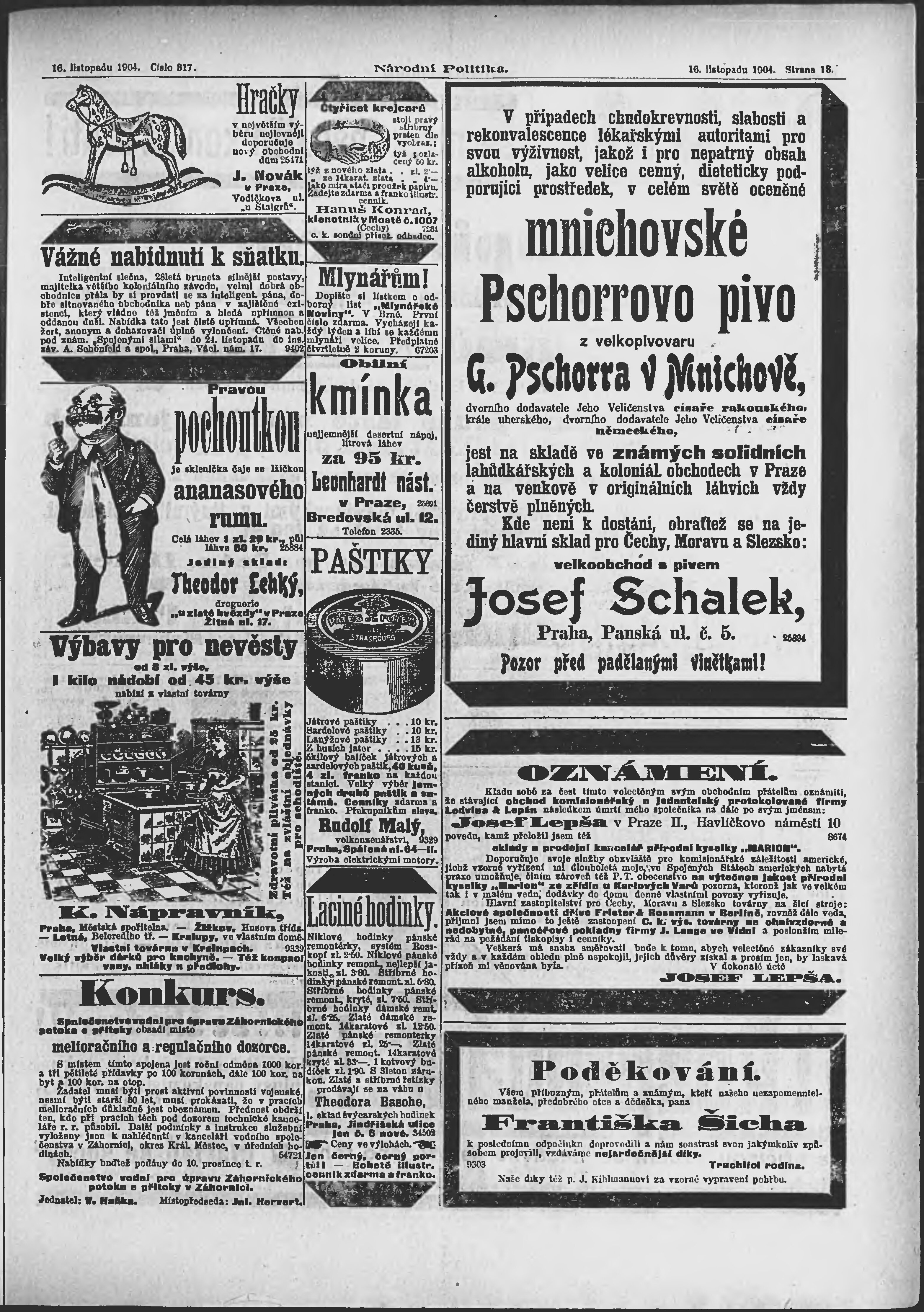 * Datum vydání výtisku: 16.11.1904 Číslo výtisku: 317 Poznámky k výtisku: ranní vydání;