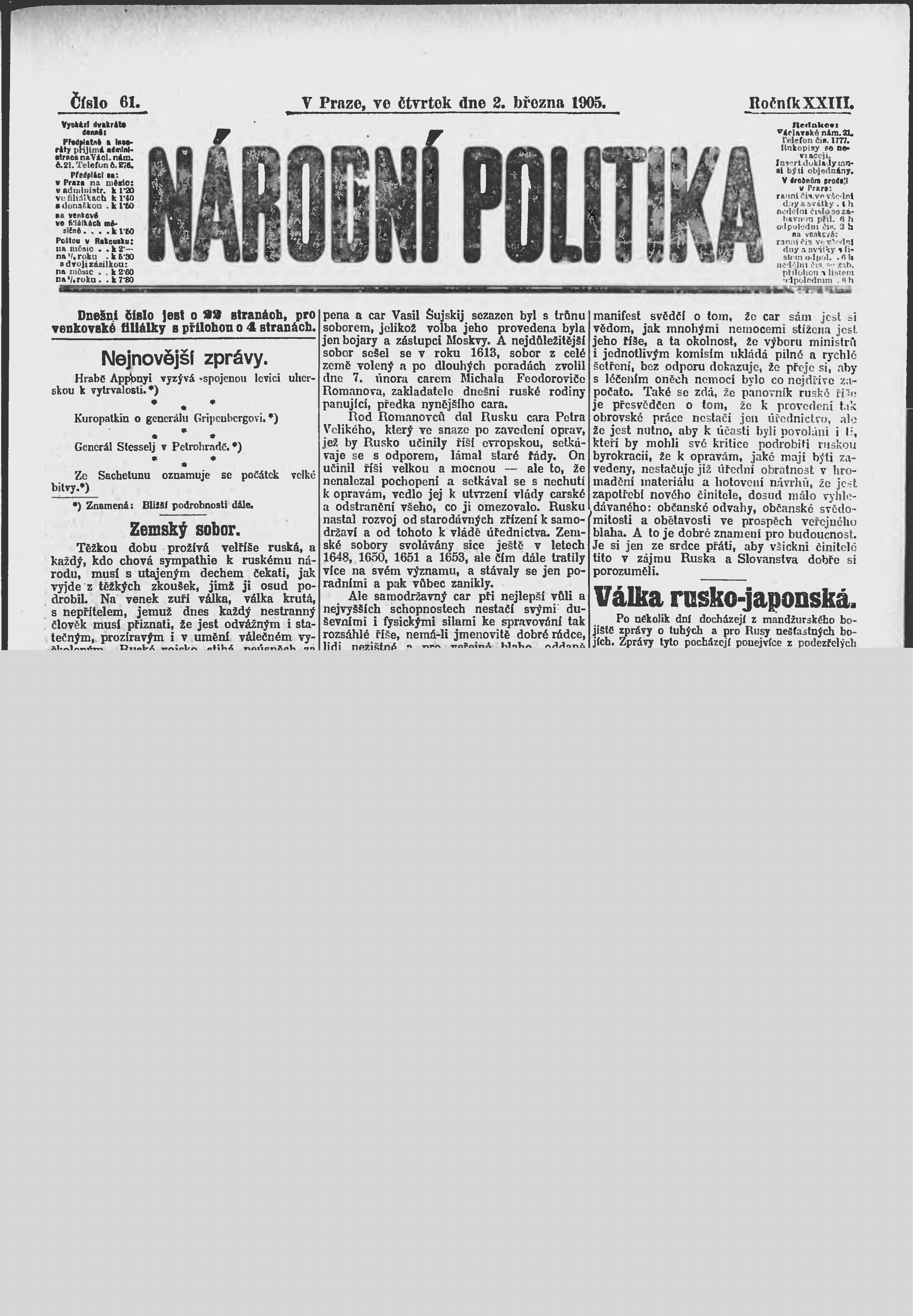 * Datum vydání výtisku: 2.3.1905 Číslo výtisku: 61 Poznámky k výtisku: ranní vydání;