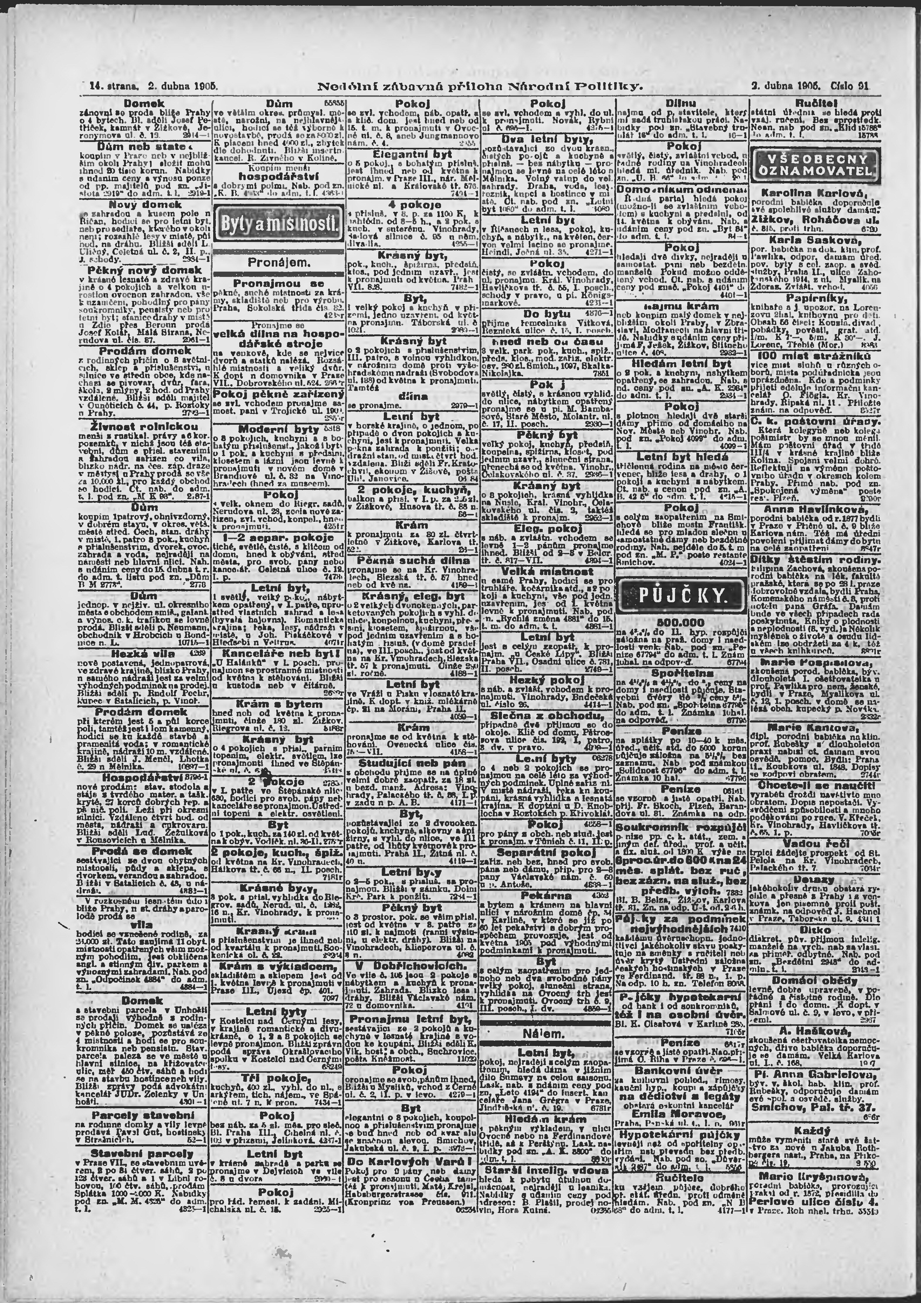 * Datum vydání výtisku: 2.4.1905 Číslo výtisku: 91 Typ výtisku: příloha