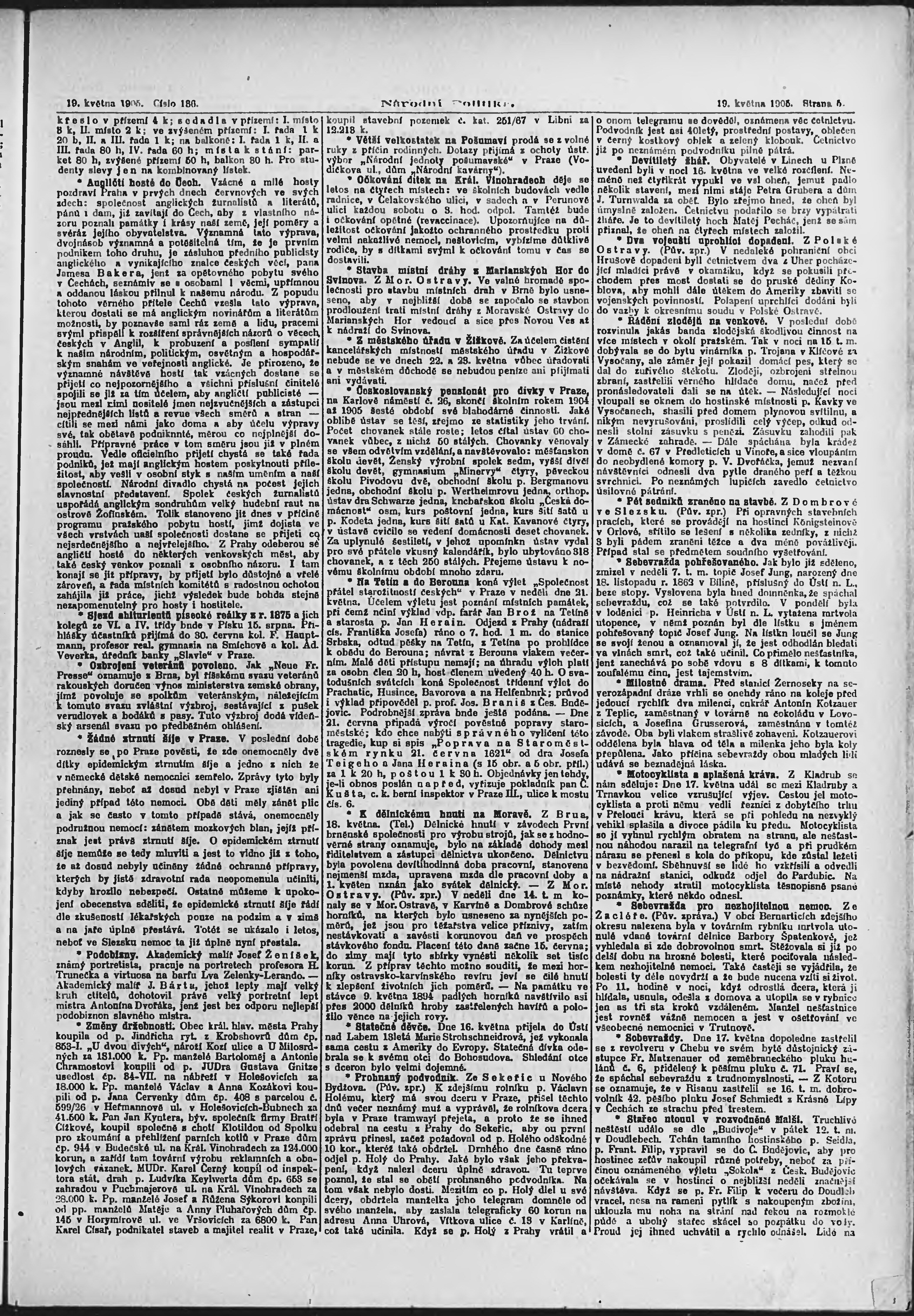 * Datum vydání výtisku: 19.5.1905 Číslo výtisku: 136 Poznámky k výtisku: ranní vydání;