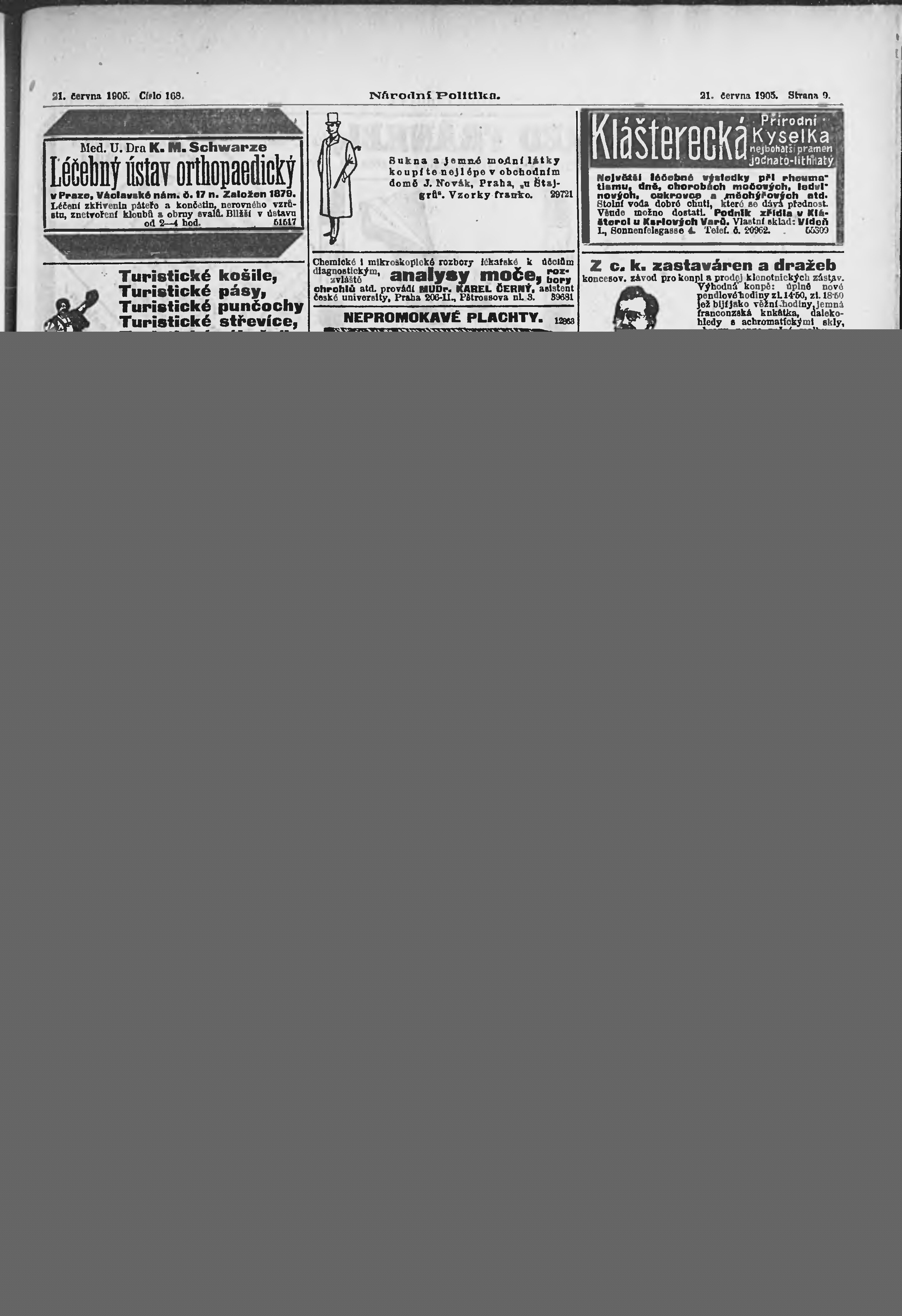 * Datum vydání výtisku: 21.6.1905 Číslo výtisku: 168 Poznámky k výtisku: ranní vydání;