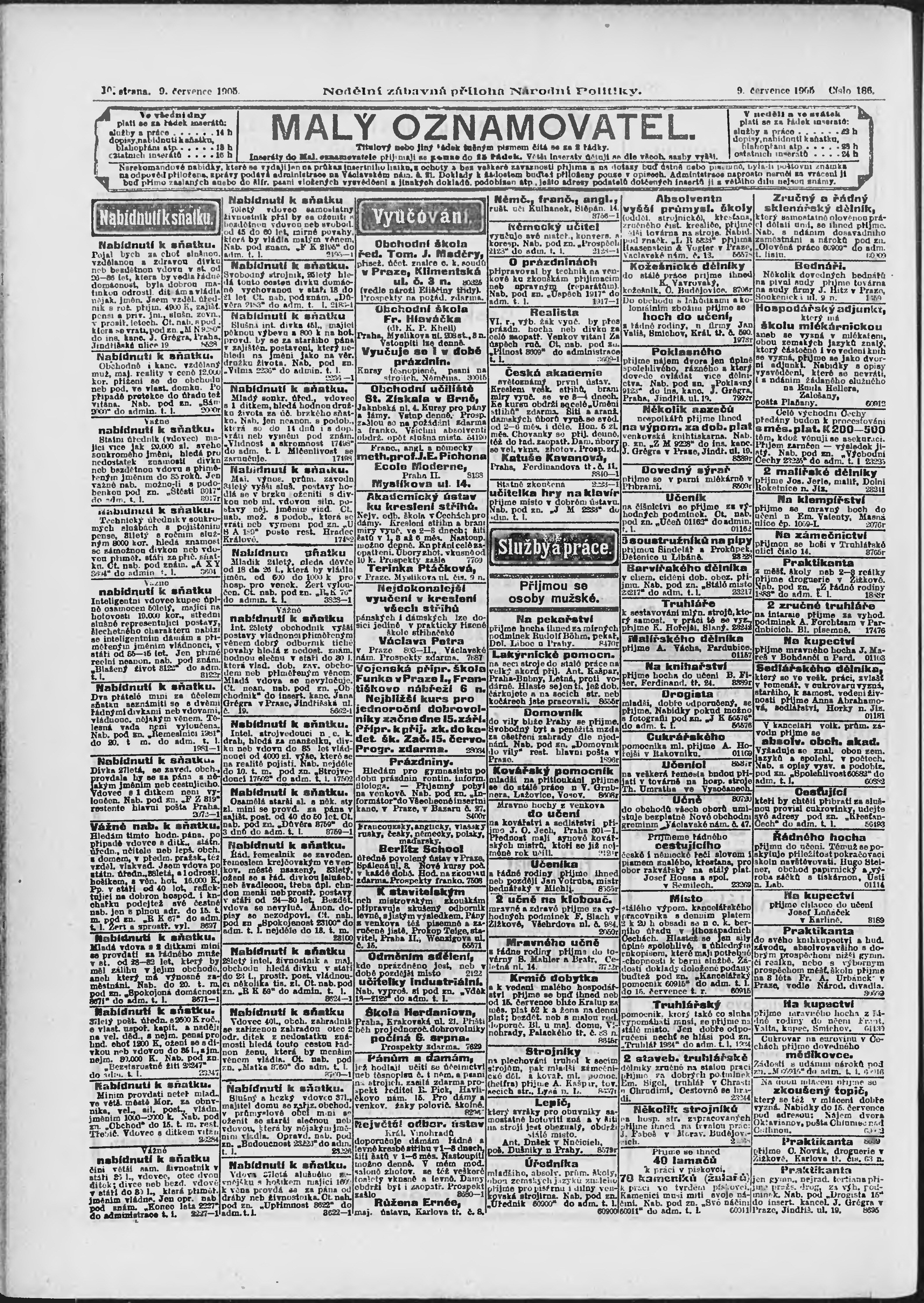 * Datum vydání výtisku: 9.7.1905 Číslo výtisku: 186 Typ výtisku: příloha