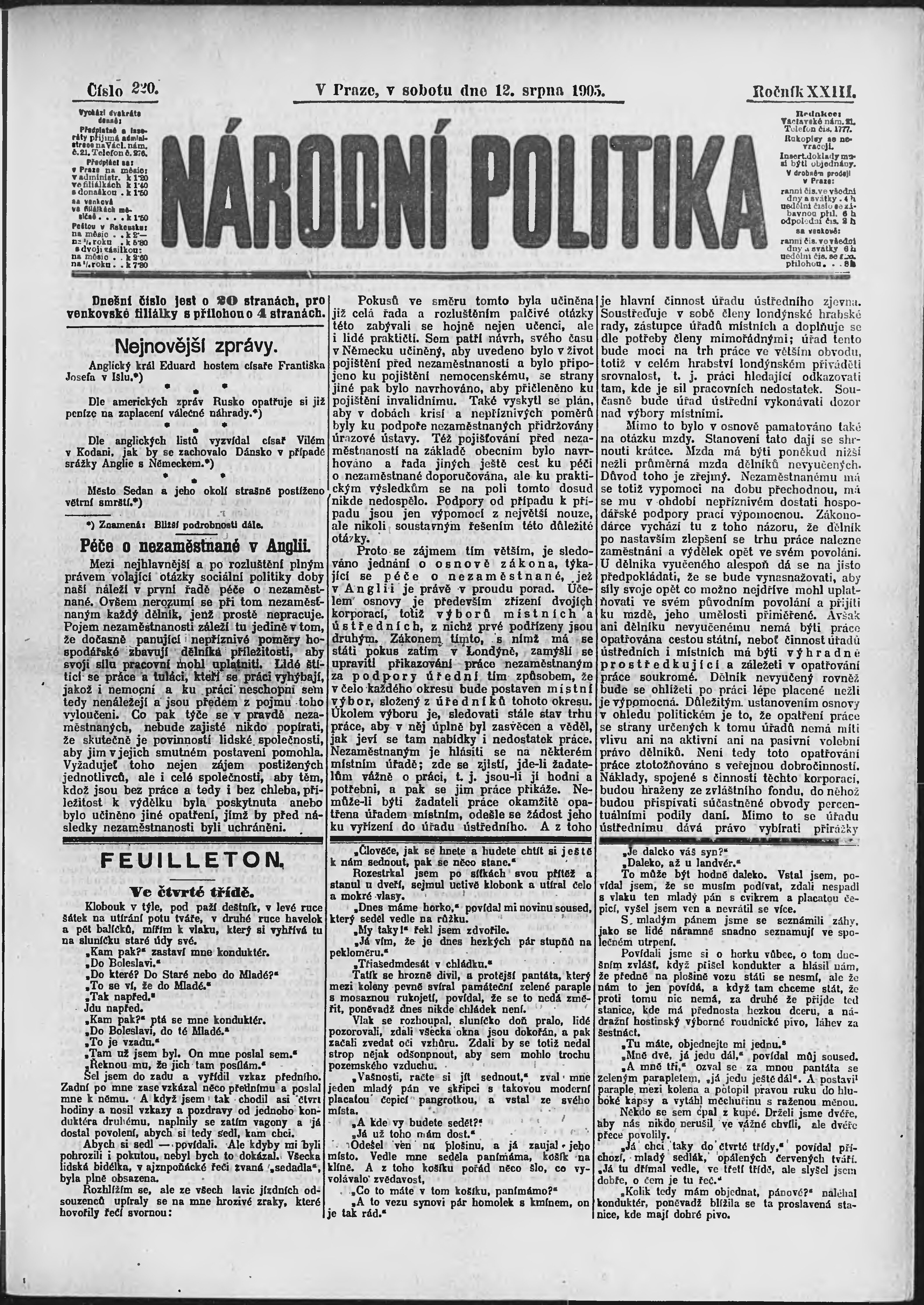 * Datum vydání výtisku: 12.8.1905 Číslo výtisku: 220 Poznámky k výtisku: ranní vydání;