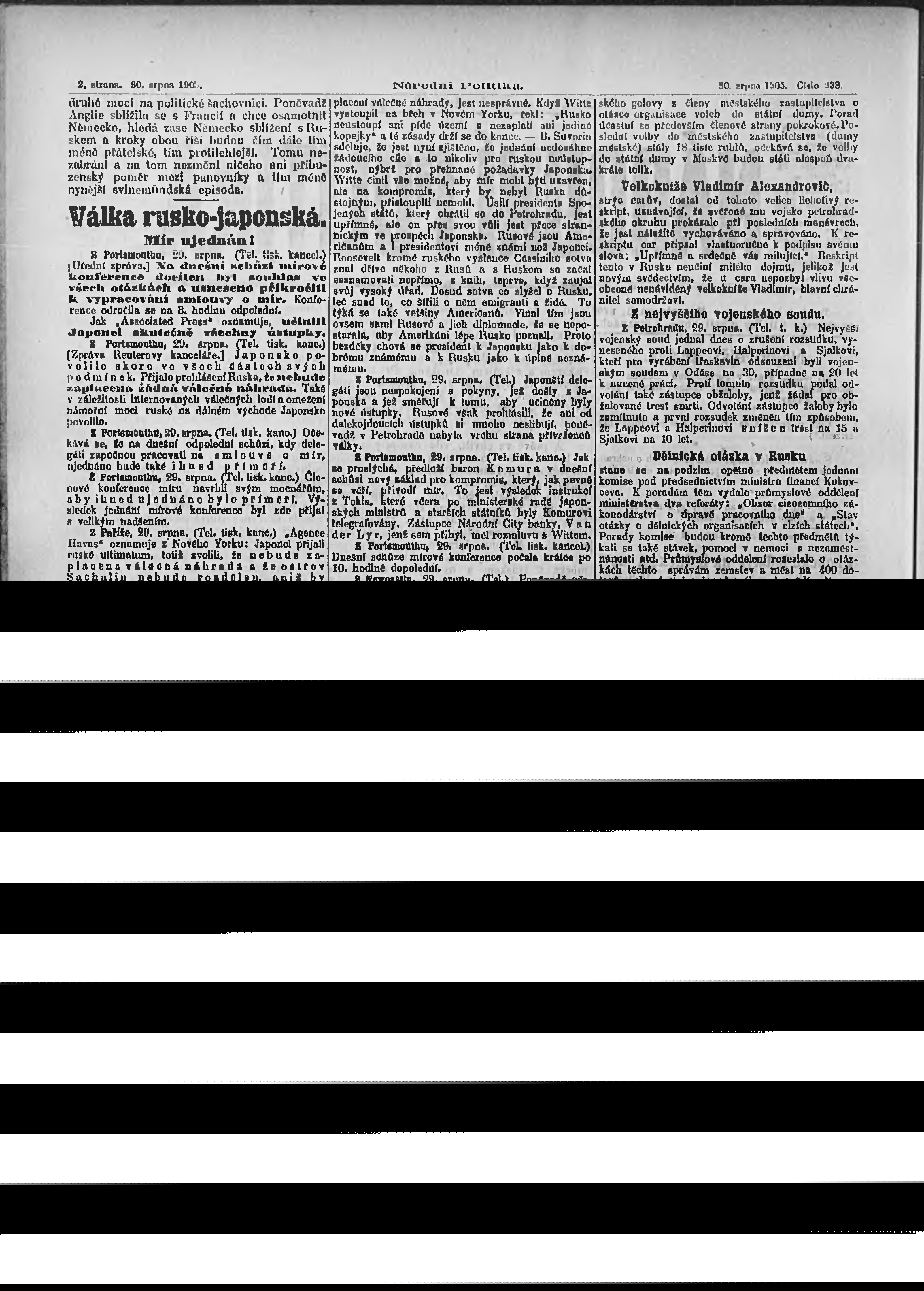 * Datum vydání výtisku: 30.8.1905 Číslo výtisku: 238 Poznámky k výtisku: ranní vydání;
