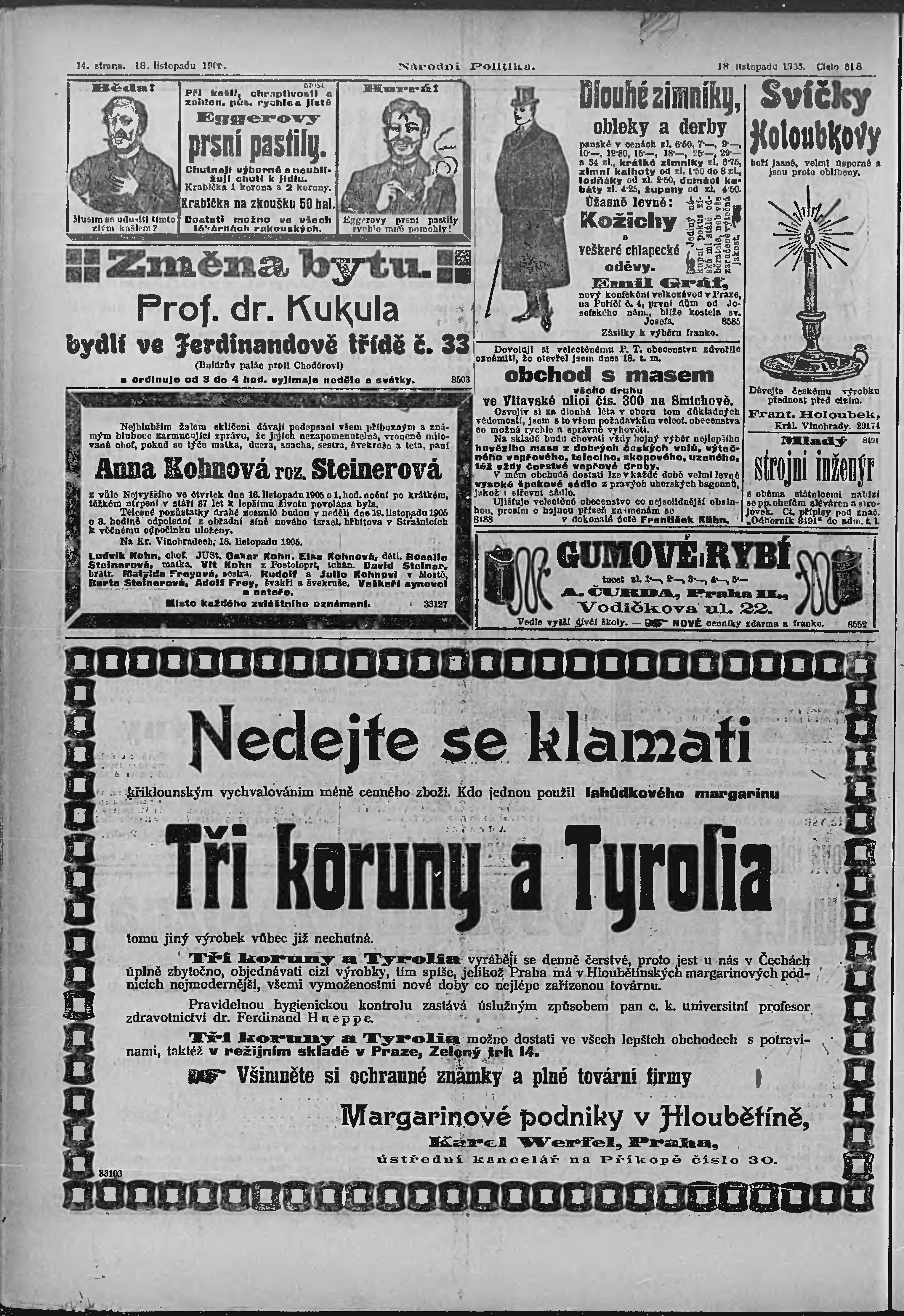 * Datum vydání výtisku: 18.11.1905 Číslo výtisku: 318 Poznámky k výtisku: ranní vydání;