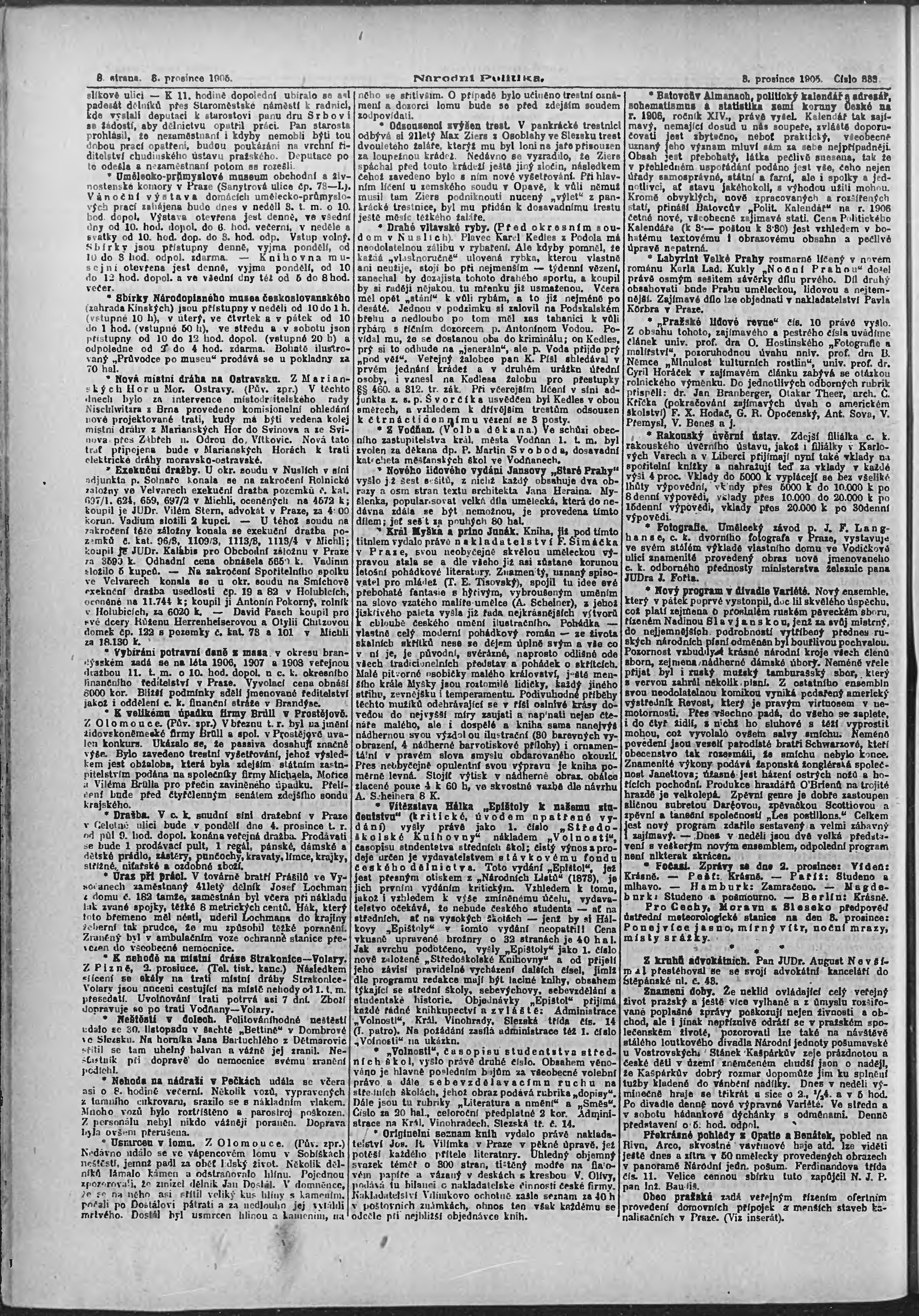 * Datum vydání výtisku: 3.12.1905 Číslo výtisku: 333 Poznámky k výtisku: ranní vydání;