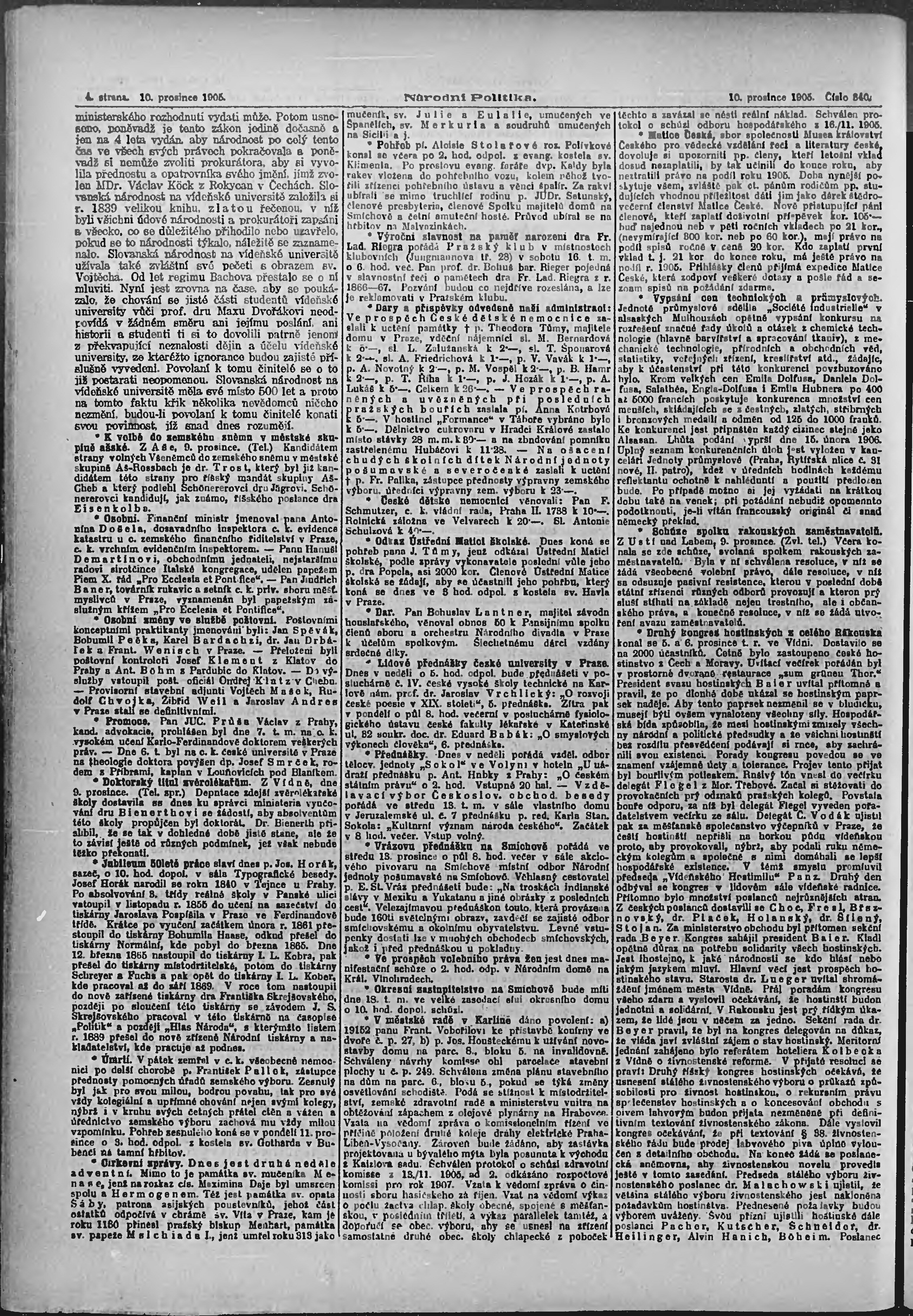 * Datum vydání výtisku: 10.12.1905 Číslo výtisku: 340 Poznámky k výtisku: ranní vydání;
