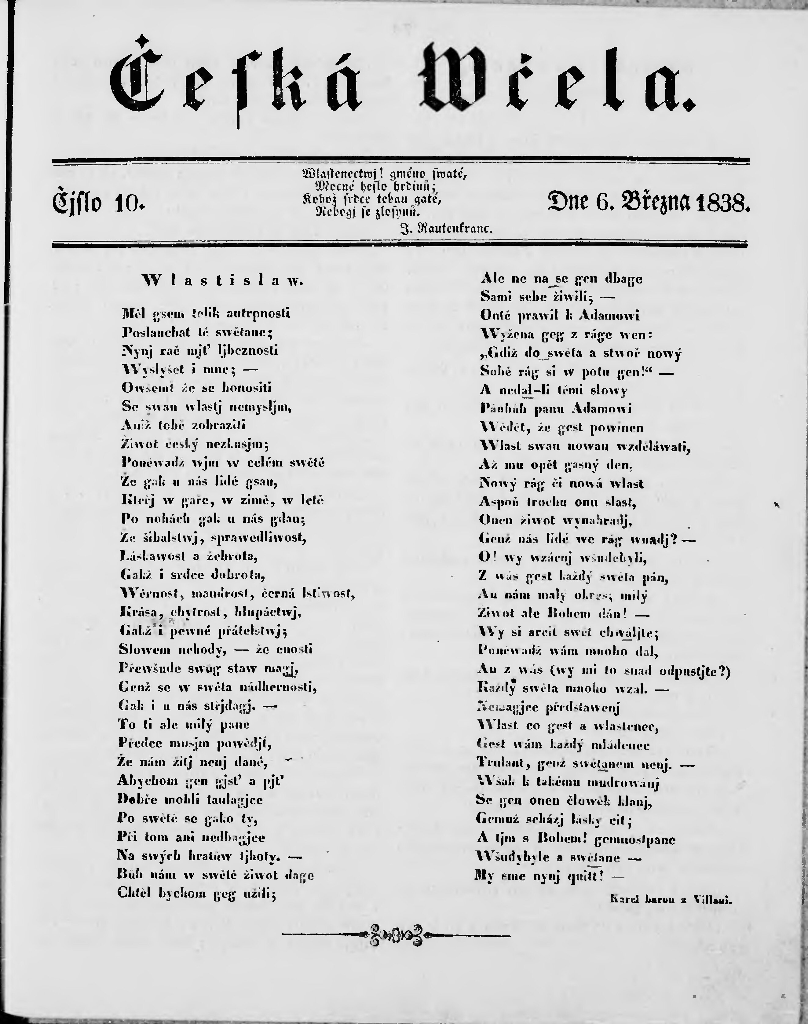 * Datum vydání výtisku: 6.3.1838 Číslo výtisku: 10
