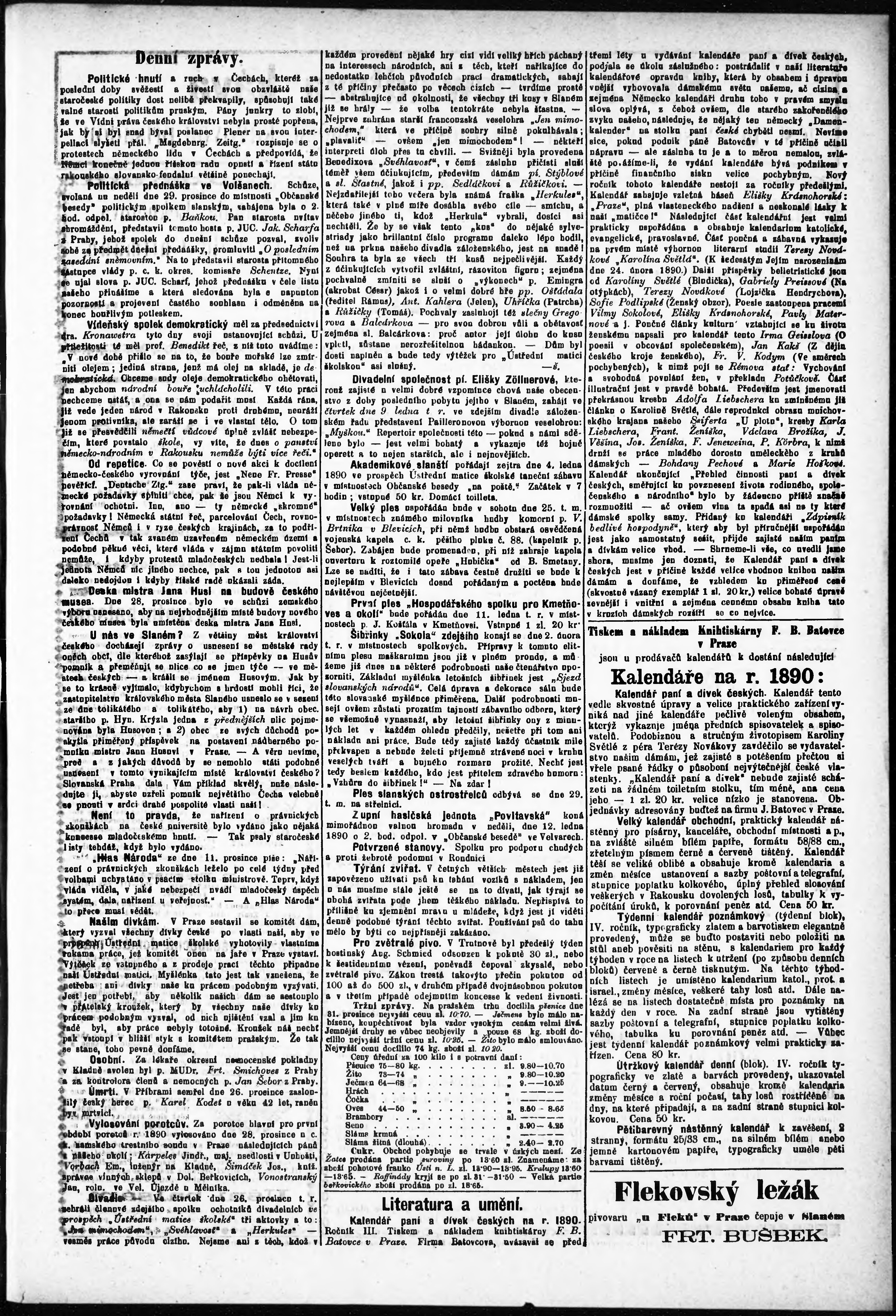 * Datum vydání výtisku: 3.1.1890 Číslo výtisku: 1