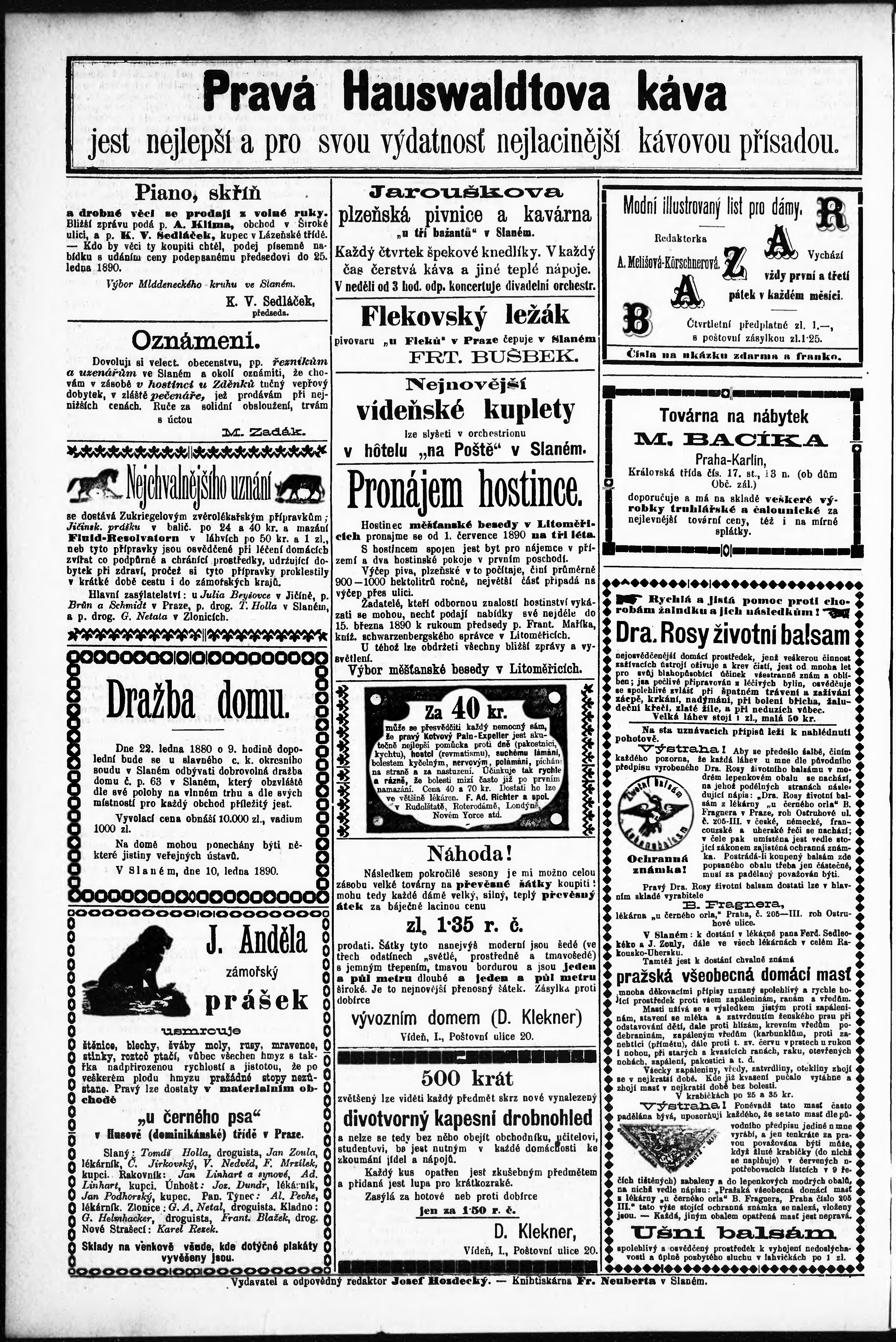 * Datum vydání výtisku: 17.1.1890 Číslo výtisku: 2