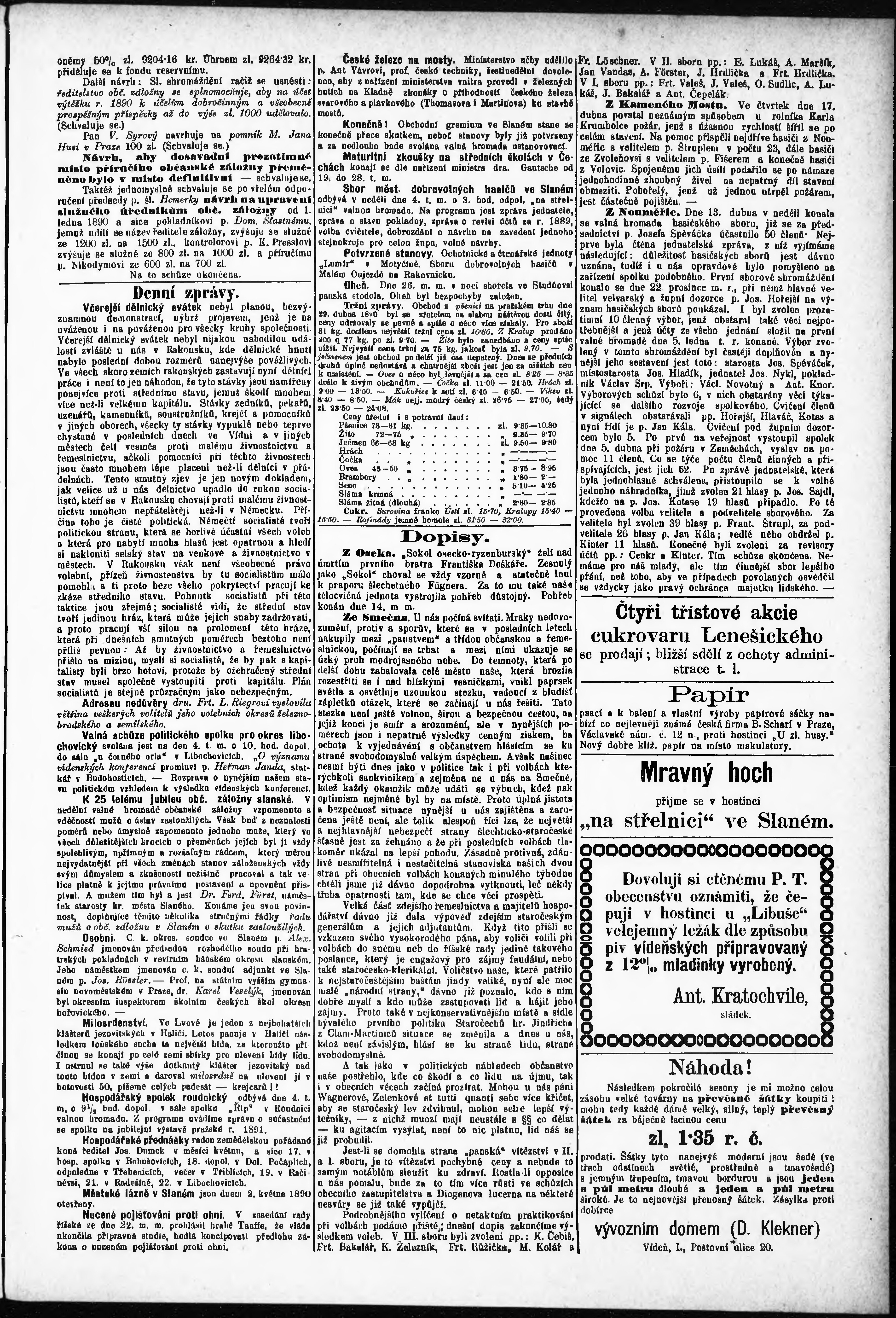 * Datum vydání výtisku: 2.5.1890 Číslo výtisku: 9