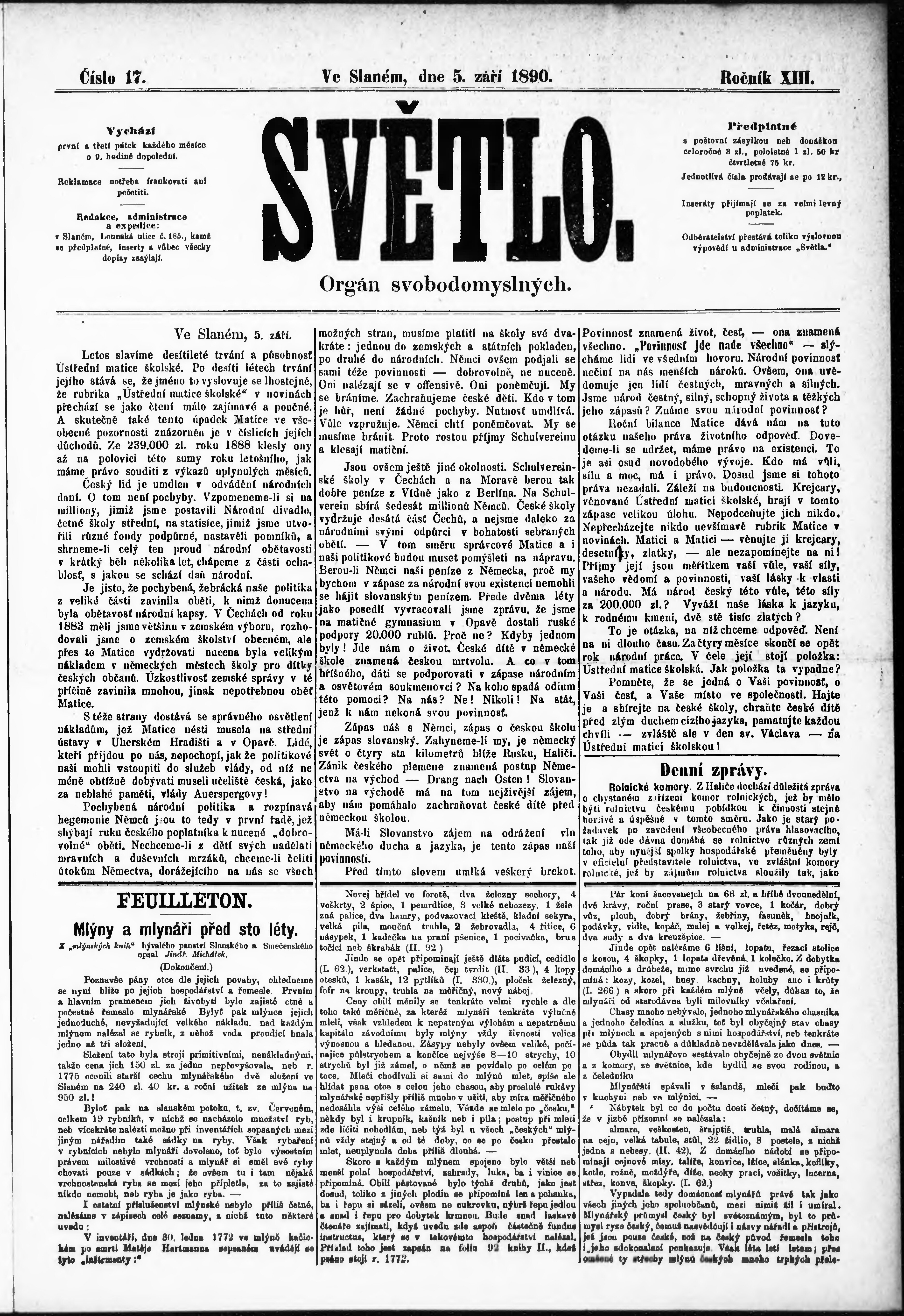 * Datum vydání výtisku: 6.9.1890 Číslo výtisku: 17