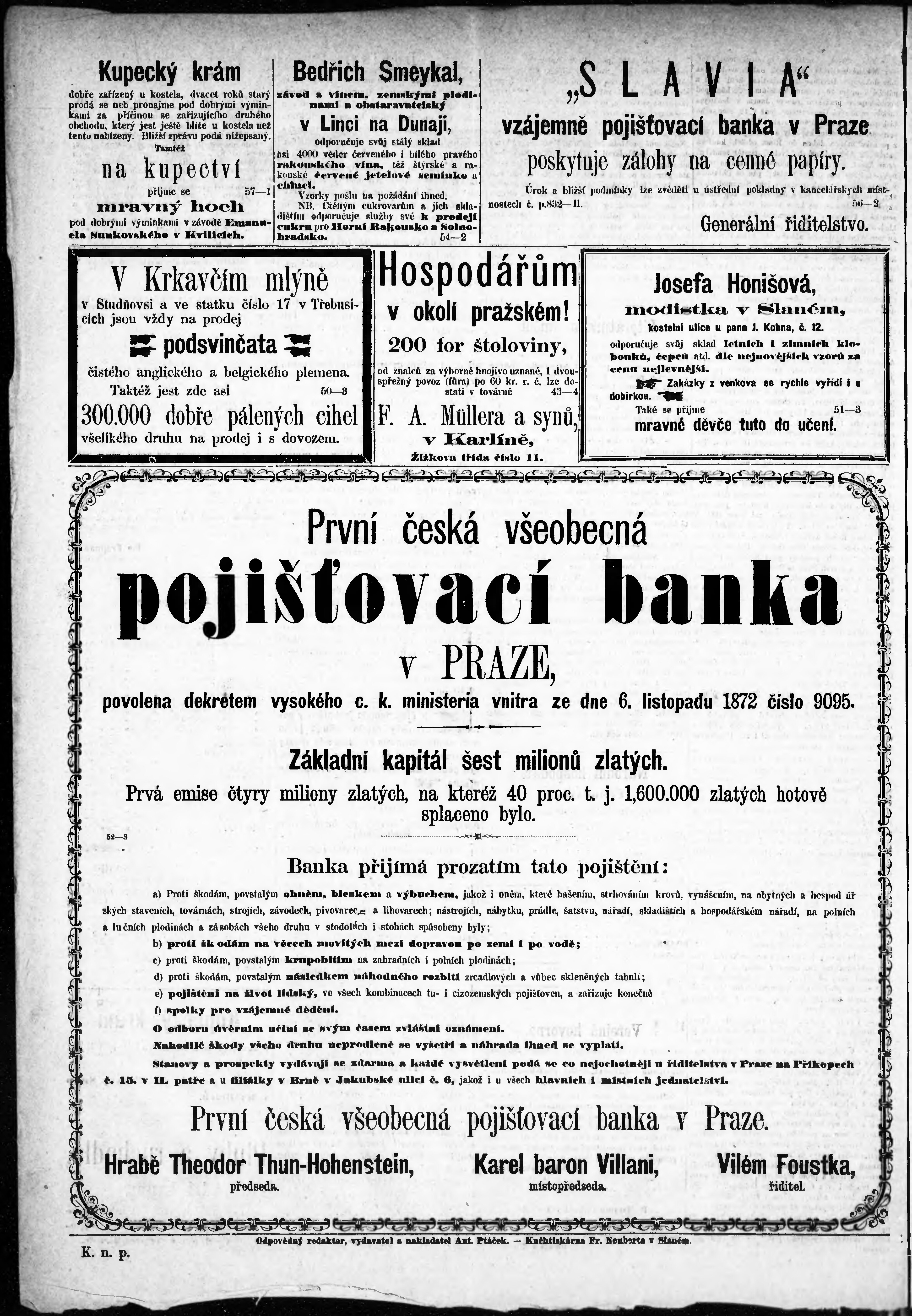 * Datum vydání výtisku: 1.3.1873 Číslo výtisku: 9