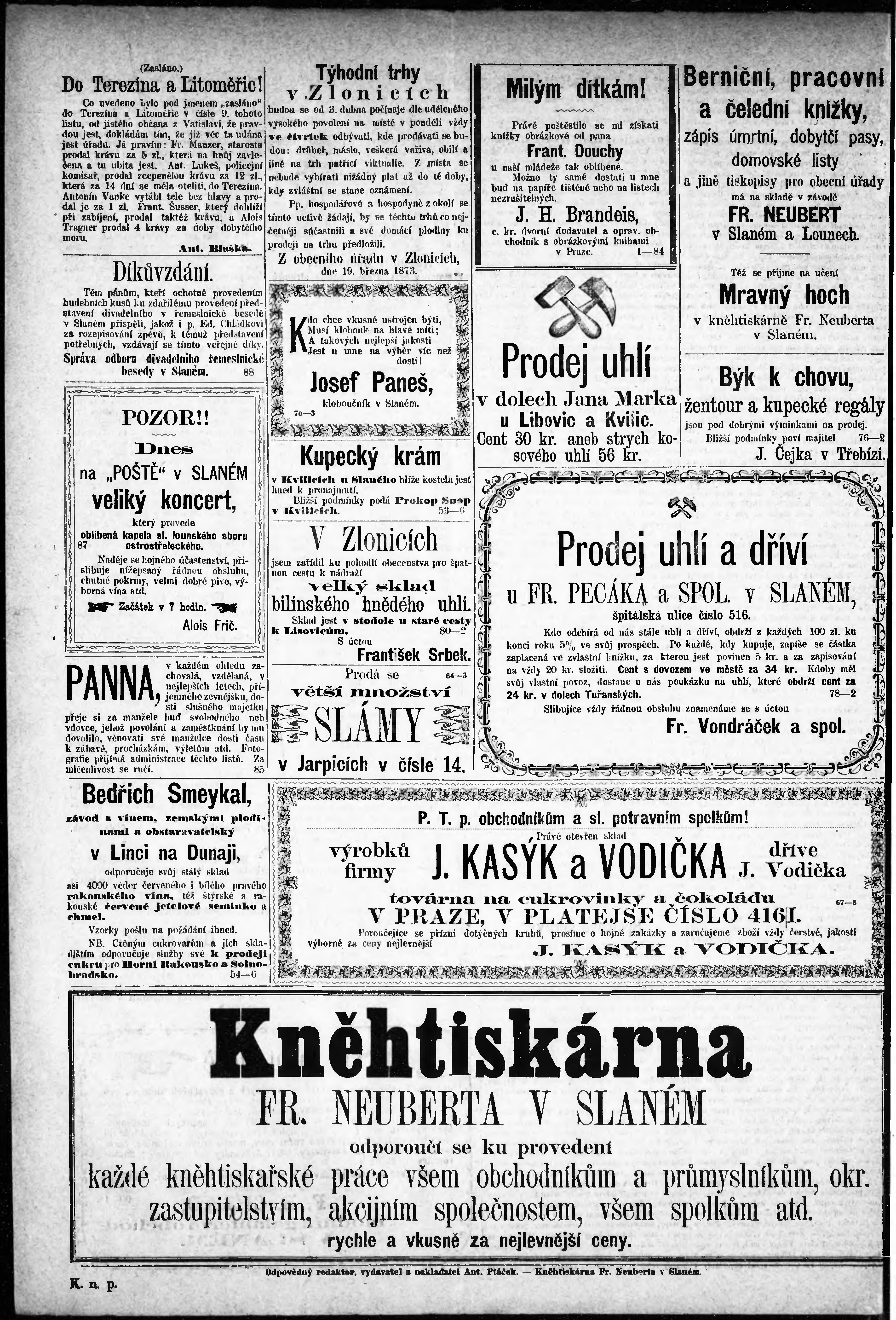 * Datum vydání výtisku: 29.3.1873 Číslo výtisku: 13