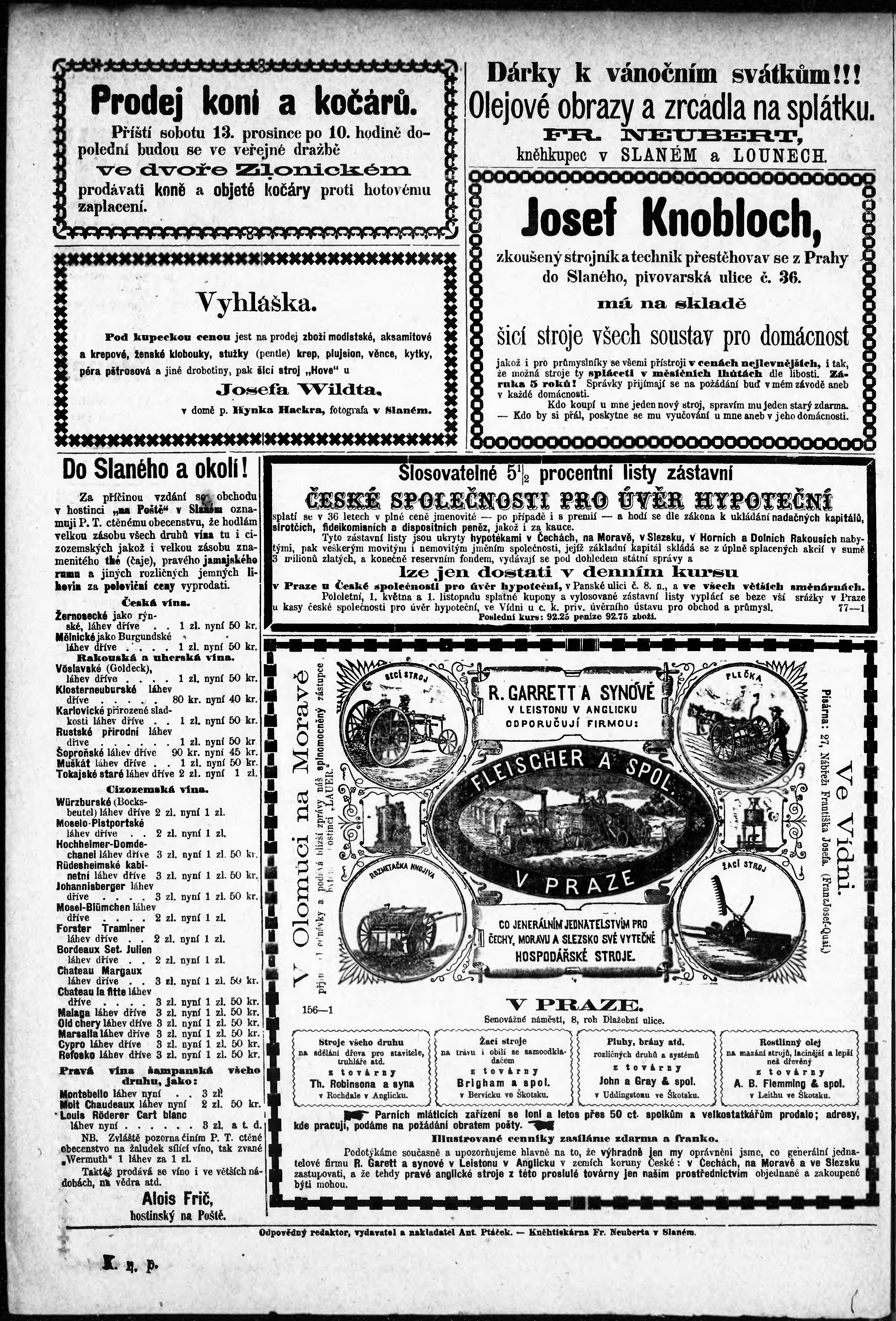 * Datum vydání výtisku: 6.12.1873 Číslo výtisku: 49