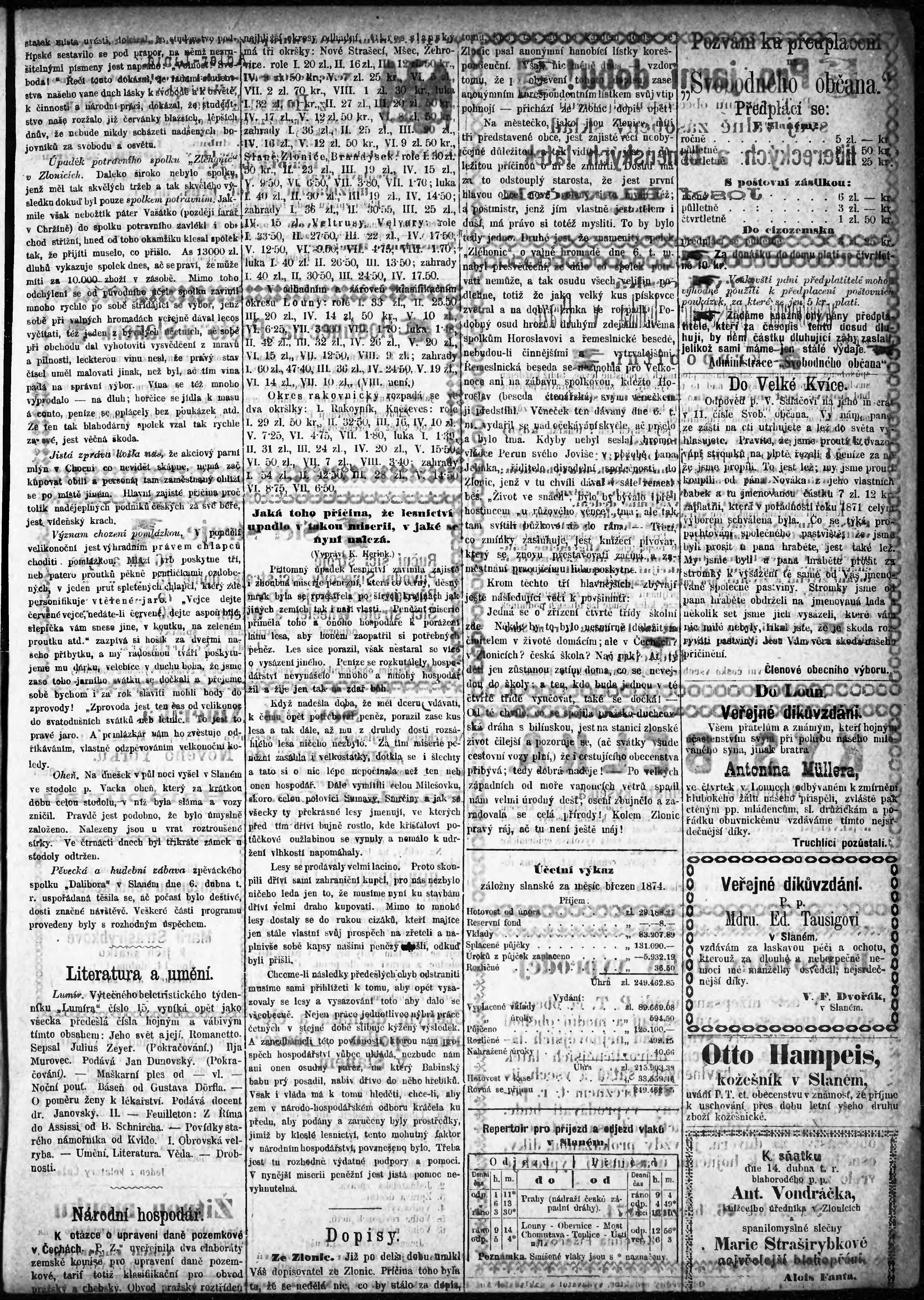 * Datum vydání výtisku: 11.4.1874 Číslo výtisku: 15
