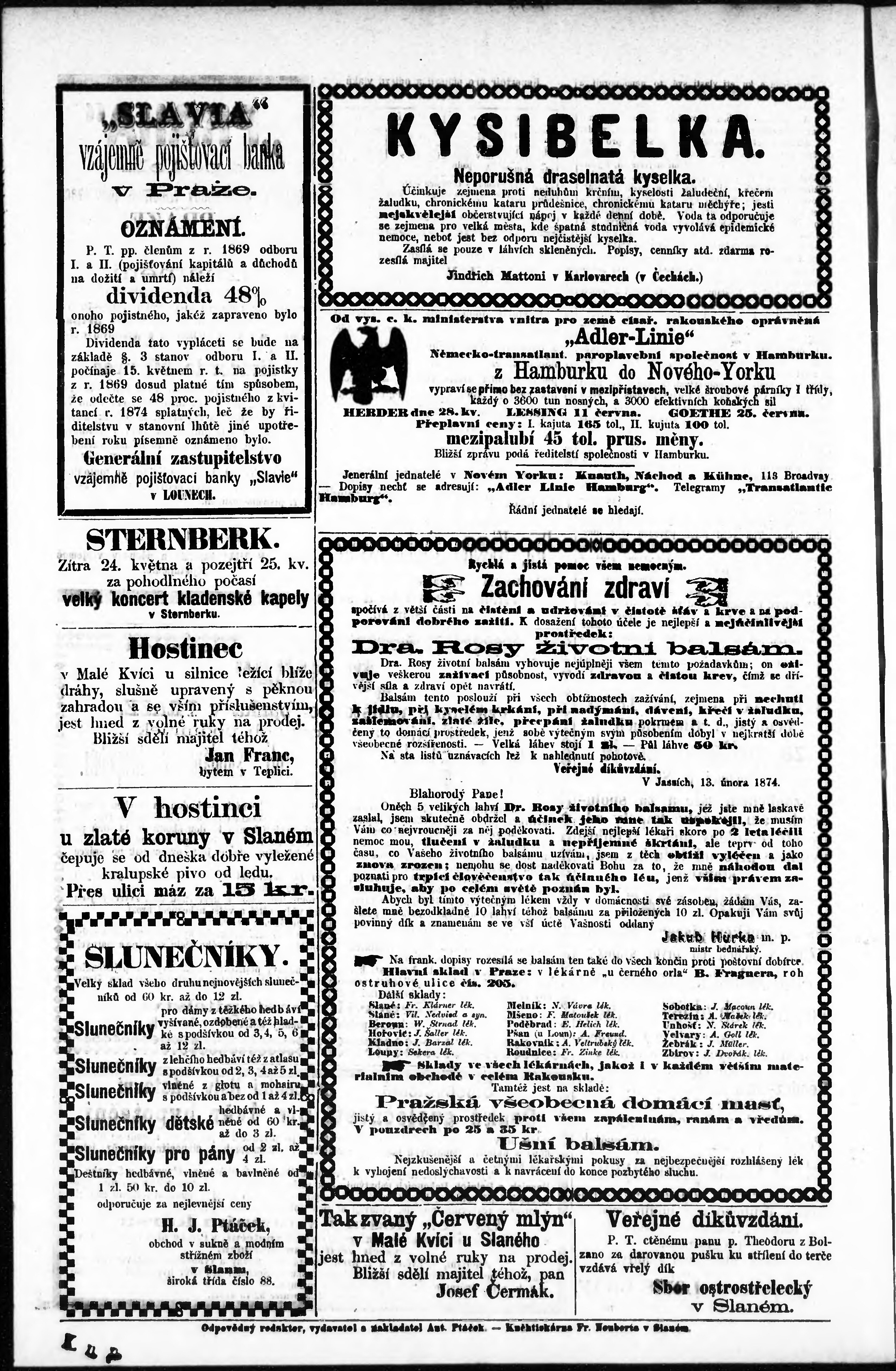 * Datum vydání výtisku: 23.5.1874 Číslo výtisku: 21