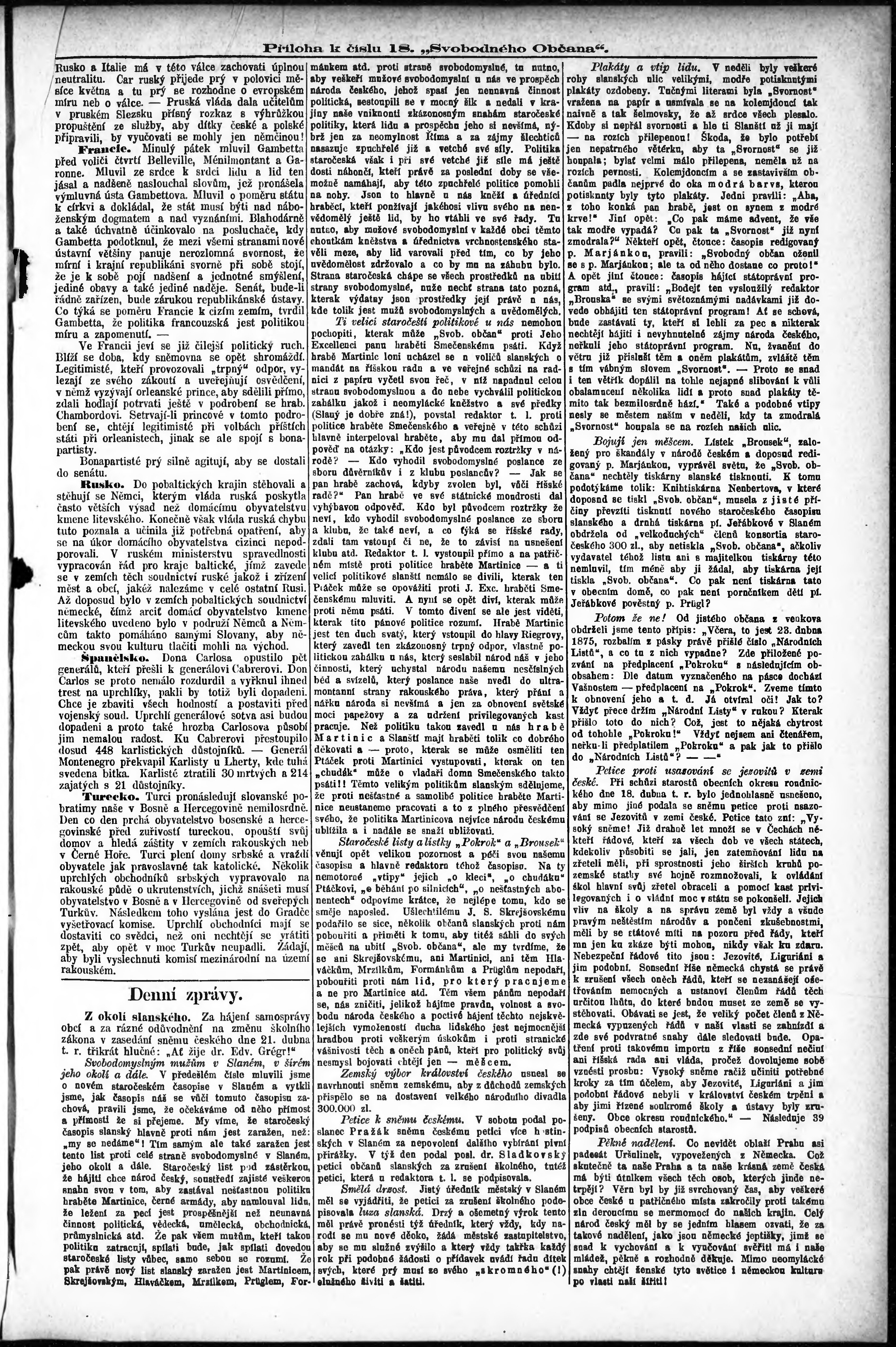 * Datum vydání výtisku: 1.5.1875 Číslo výtisku: 18