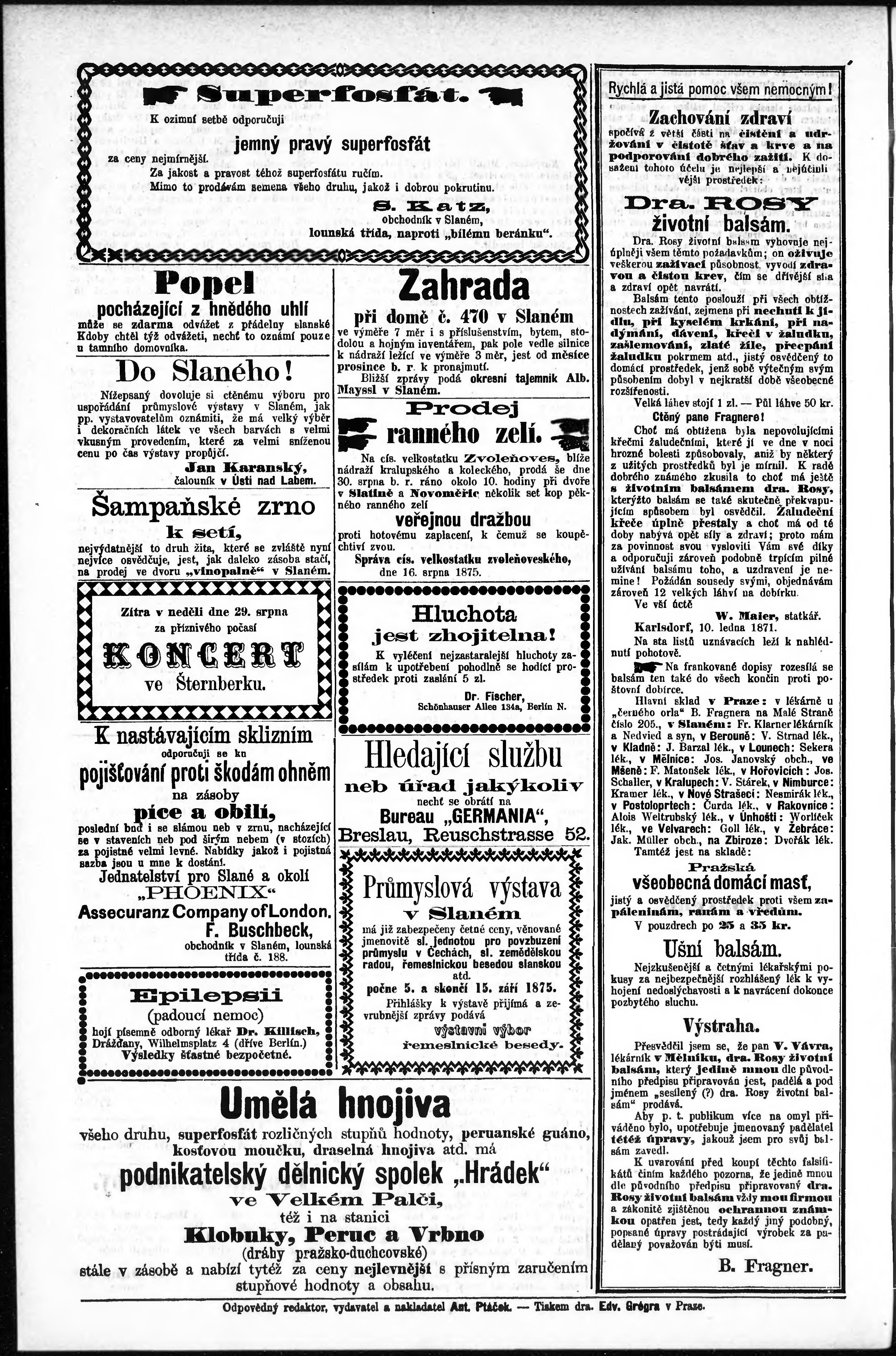 * Datum vydání výtisku: 28.8.1875 Číslo výtisku: 35