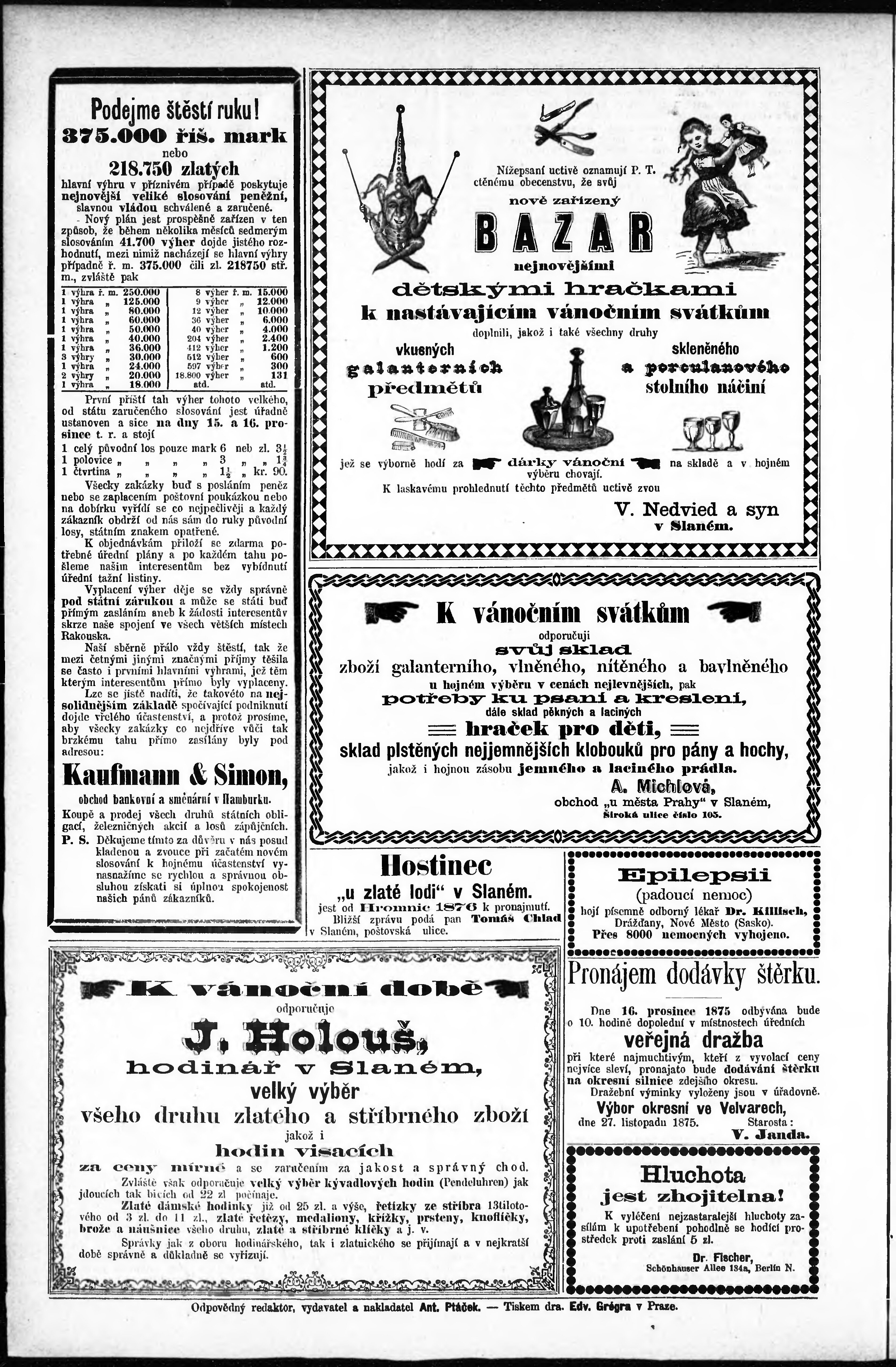 * Datum vydání výtisku: 11.12.1875 Číslo výtisku: 50
