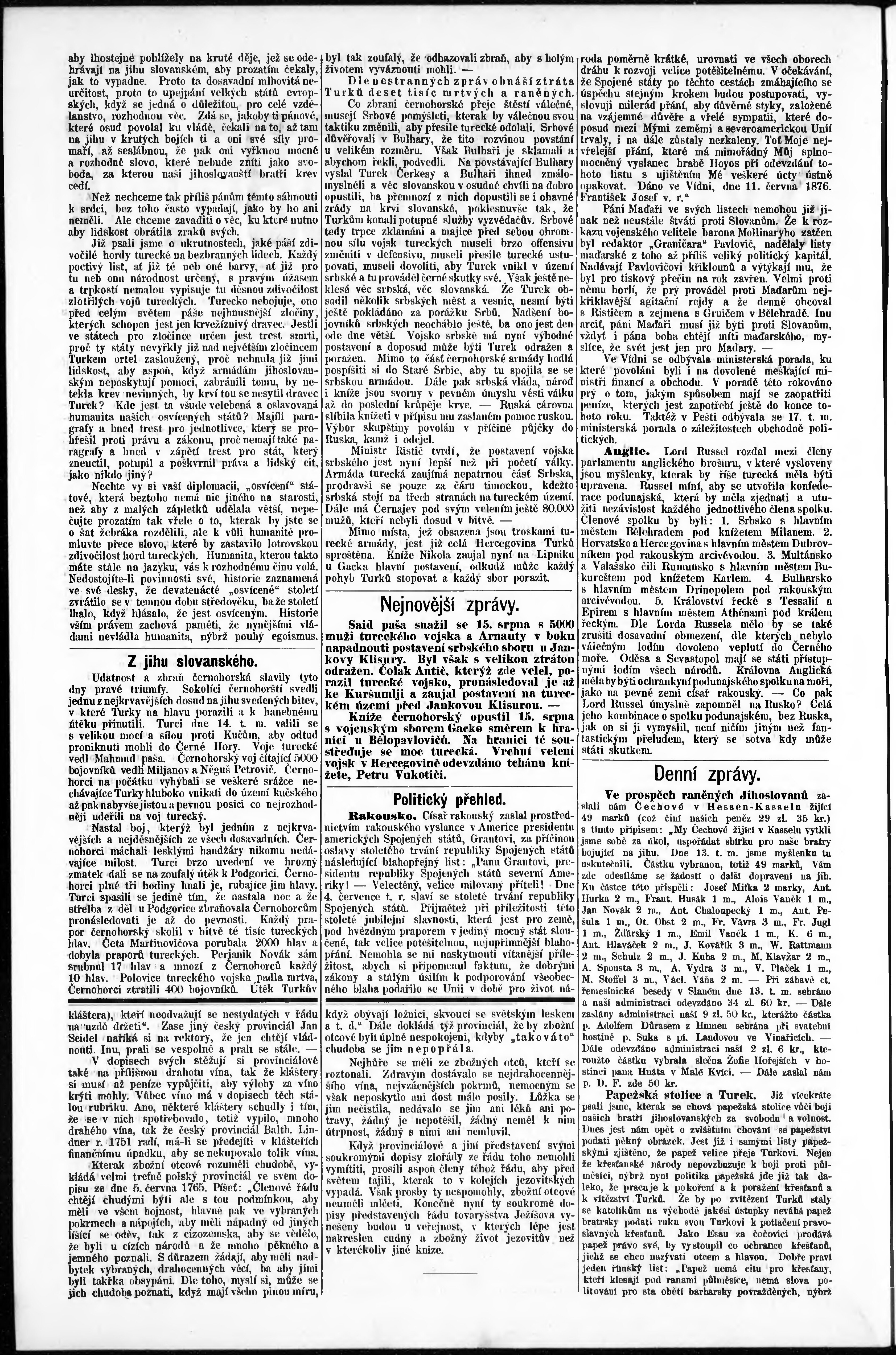 * Datum vydání výtisku: 19.8.1876 Číslo výtisku: 34