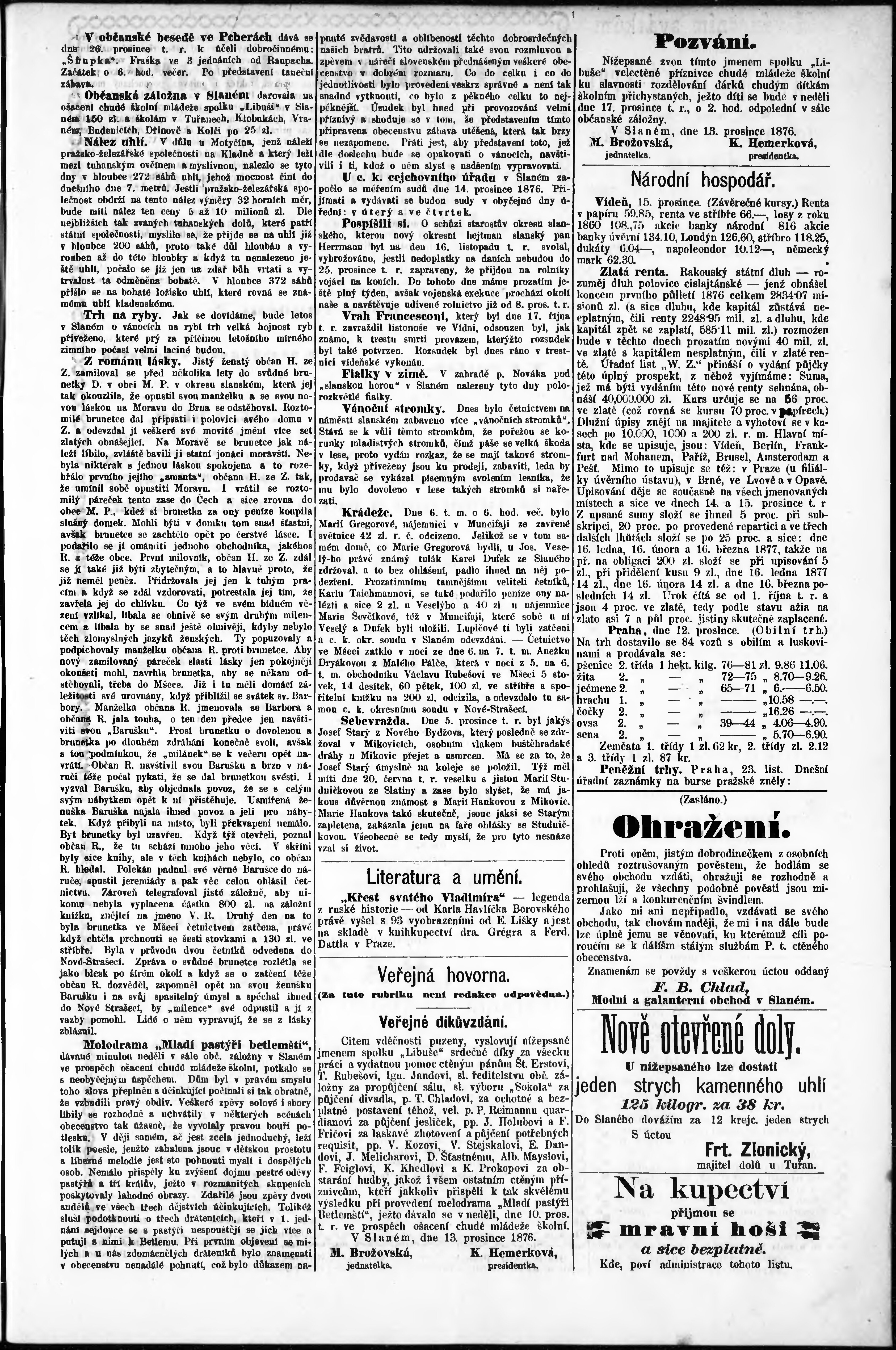* Datum vydání výtisku: 16.12.1876 Číslo výtisku: 51
