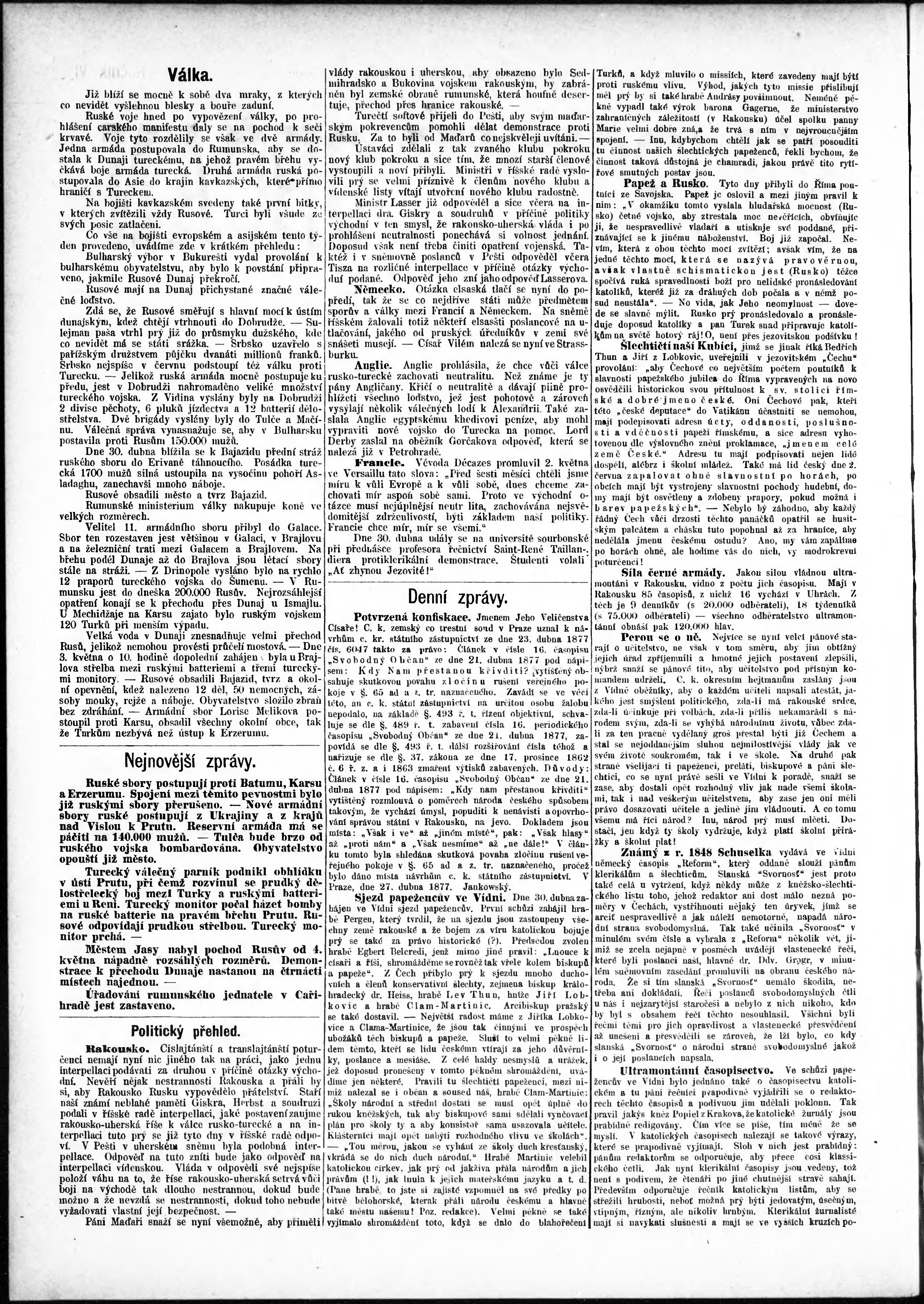 * Datum vydání výtisku: 5.5.1877 Číslo výtisku: 18