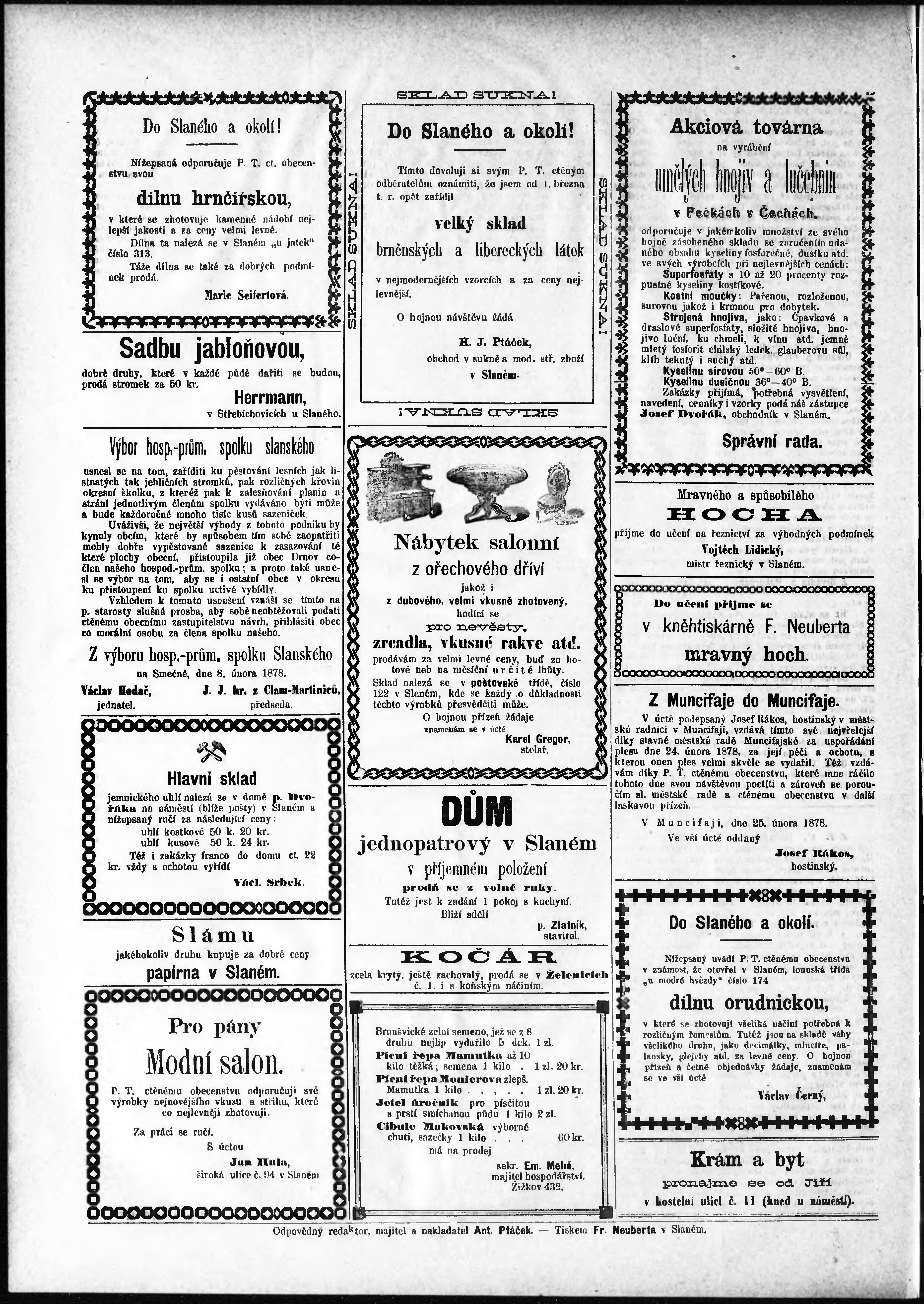 * Datum vydání výtisku: 2.3.1878 Číslo výtisku: 9