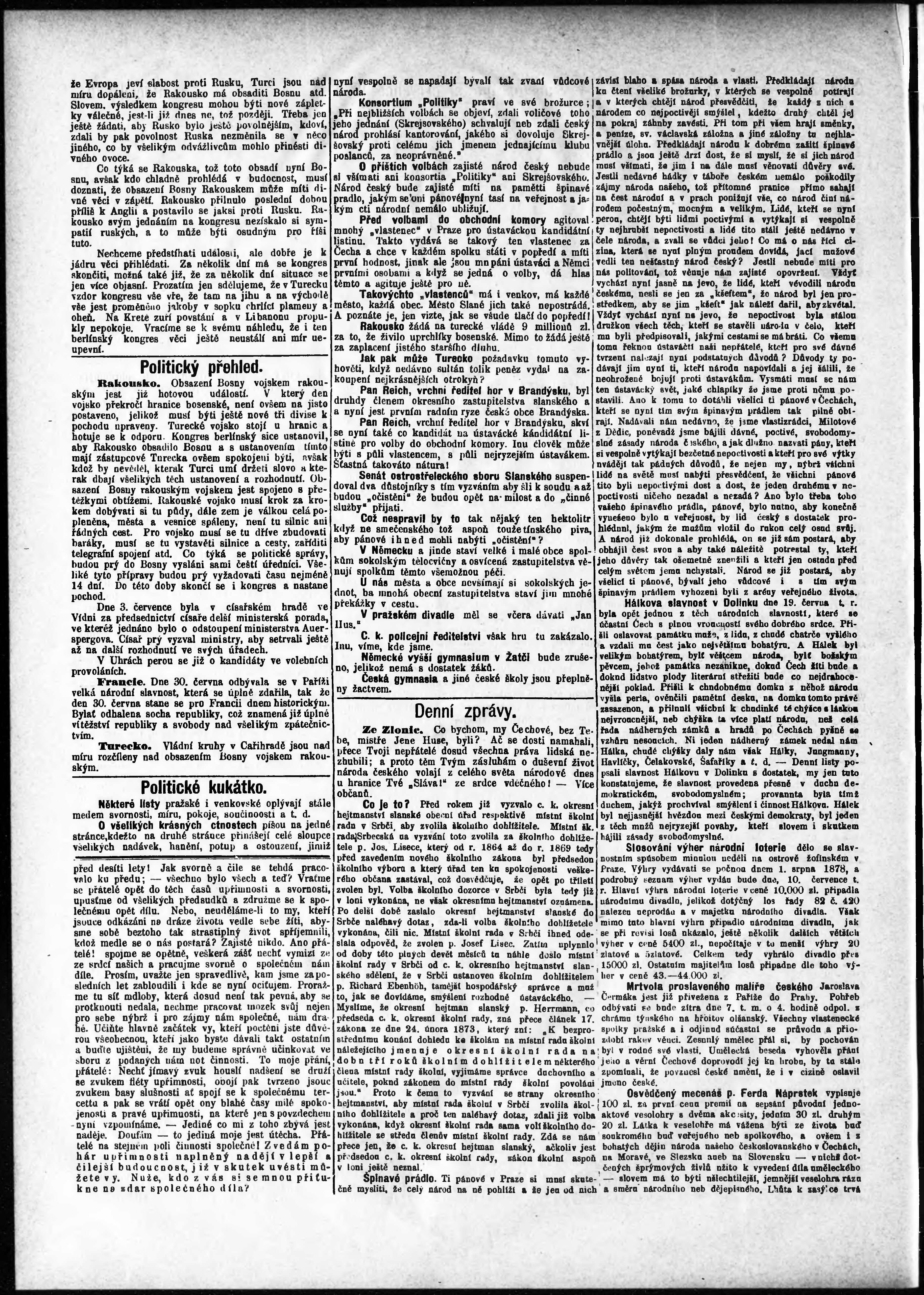 * Datum vydání výtisku: 6.7.1878 Číslo výtisku: 27