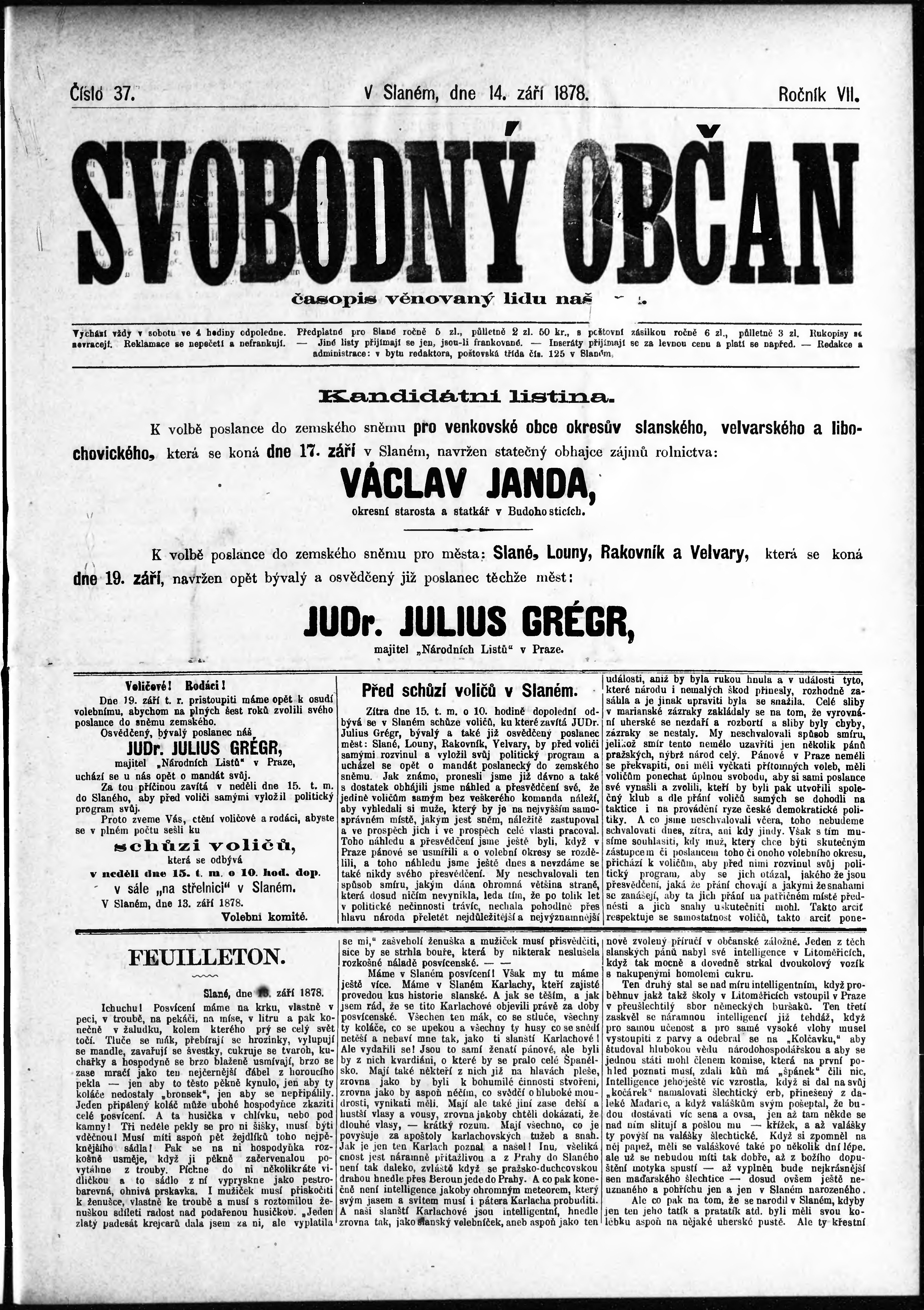* Datum vydání výtisku: 14.9.1878 Číslo výtisku: 37